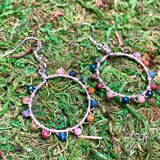 Ocean Jasper Gemstone Beads Wire Wrapped Hoop Earrings