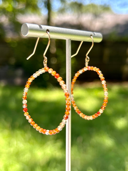 Carnelian Gemstone 14k Gold Filled Dangly Hoop Earrings