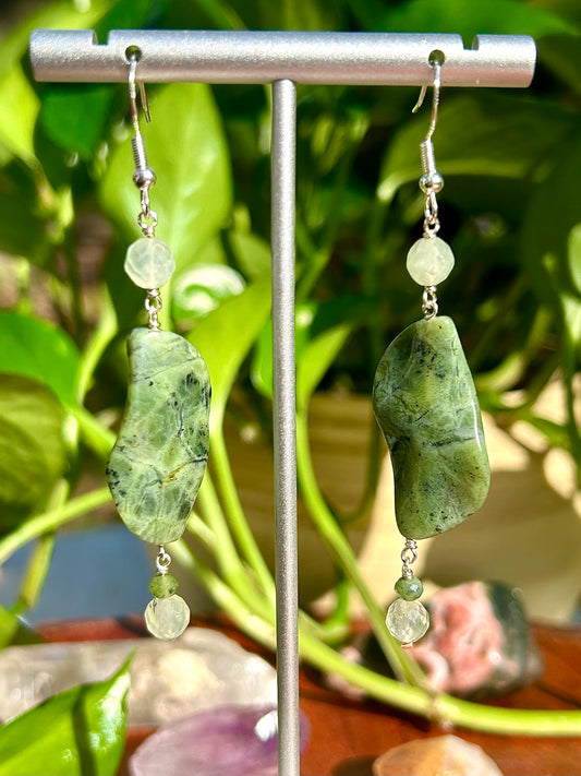 Serpentine, Prehnite & Jade Gemstone Sterling Silver Dangly Earrings
