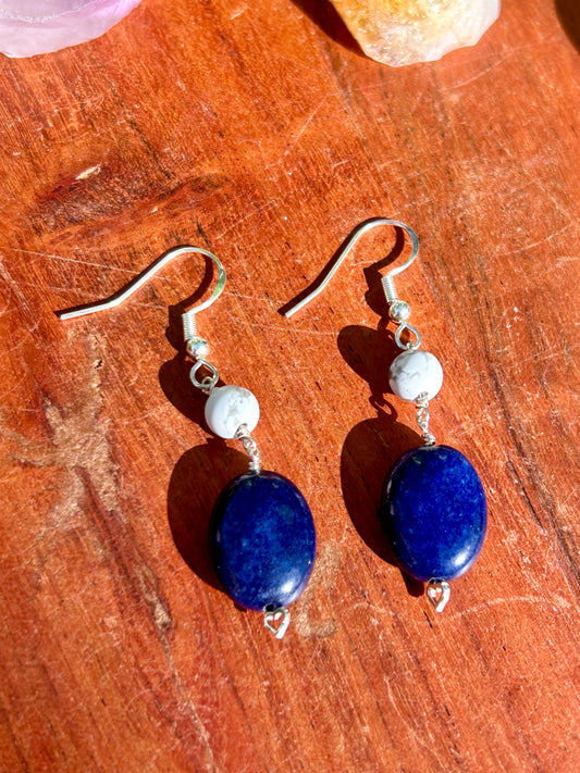 Lapis Lazuli & White Howlite Gemstone Sterling Silver Dangly Earrings