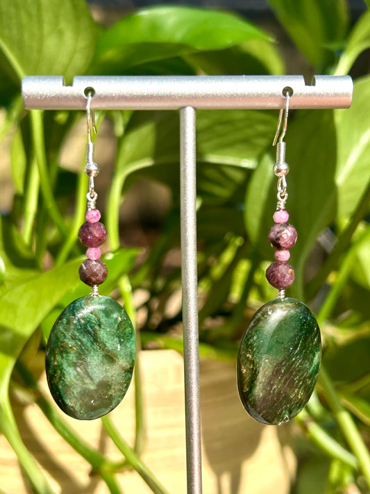 Maw-Sit-Sit & Ruby Gemstone Sterling Silver Dangly Earrings