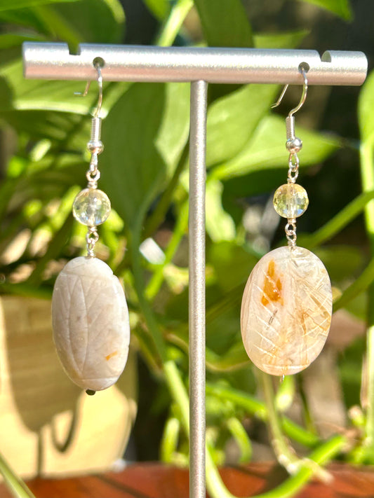 Agate & Citrine Gemstone Sterling Silver Dangly Earrings
