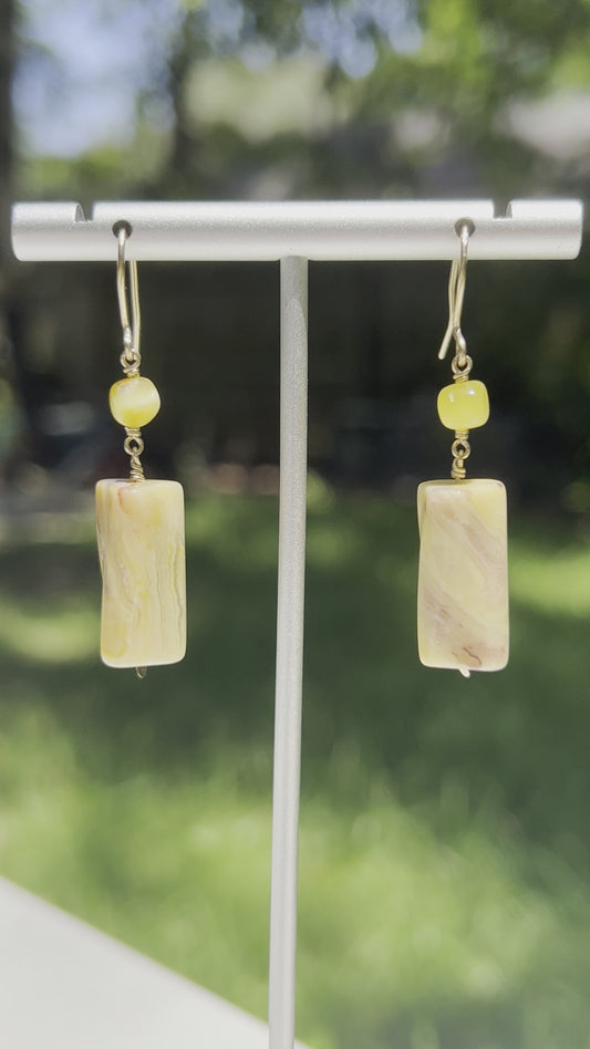 Yellow Lace Agate & Amber Gemstone 14k Gold Filled Dangly Earrings