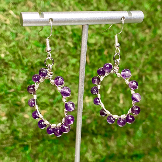 Amethyst Gemstone Beads Wire Wrapped Hoop Earrings