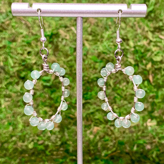 Green Aventurine Gemstone Beads Wire Wrapped Hoop Earrings