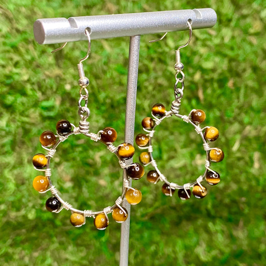 Tiger’s Eye Gemstone Beads Wire Wrapped Hoop Earrings