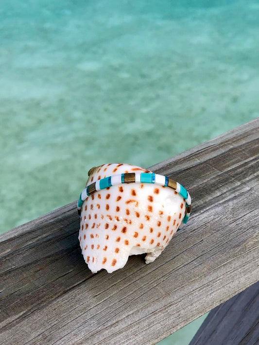 ‘Pool Tiles’ Tila Glass Bead Elastic Bracelet