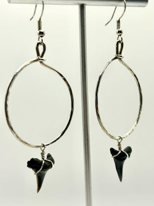 Shark Tooth Fossil Sterling Silver Hoop Earrings