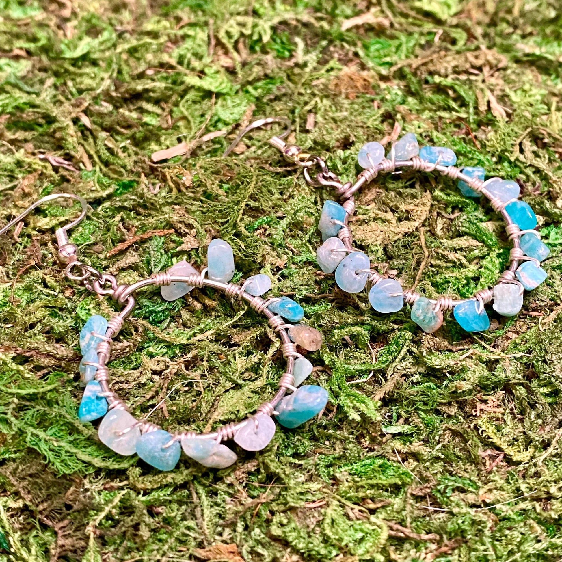 Dangly wire wrapped hoop earrings with amazonite gemstone chips