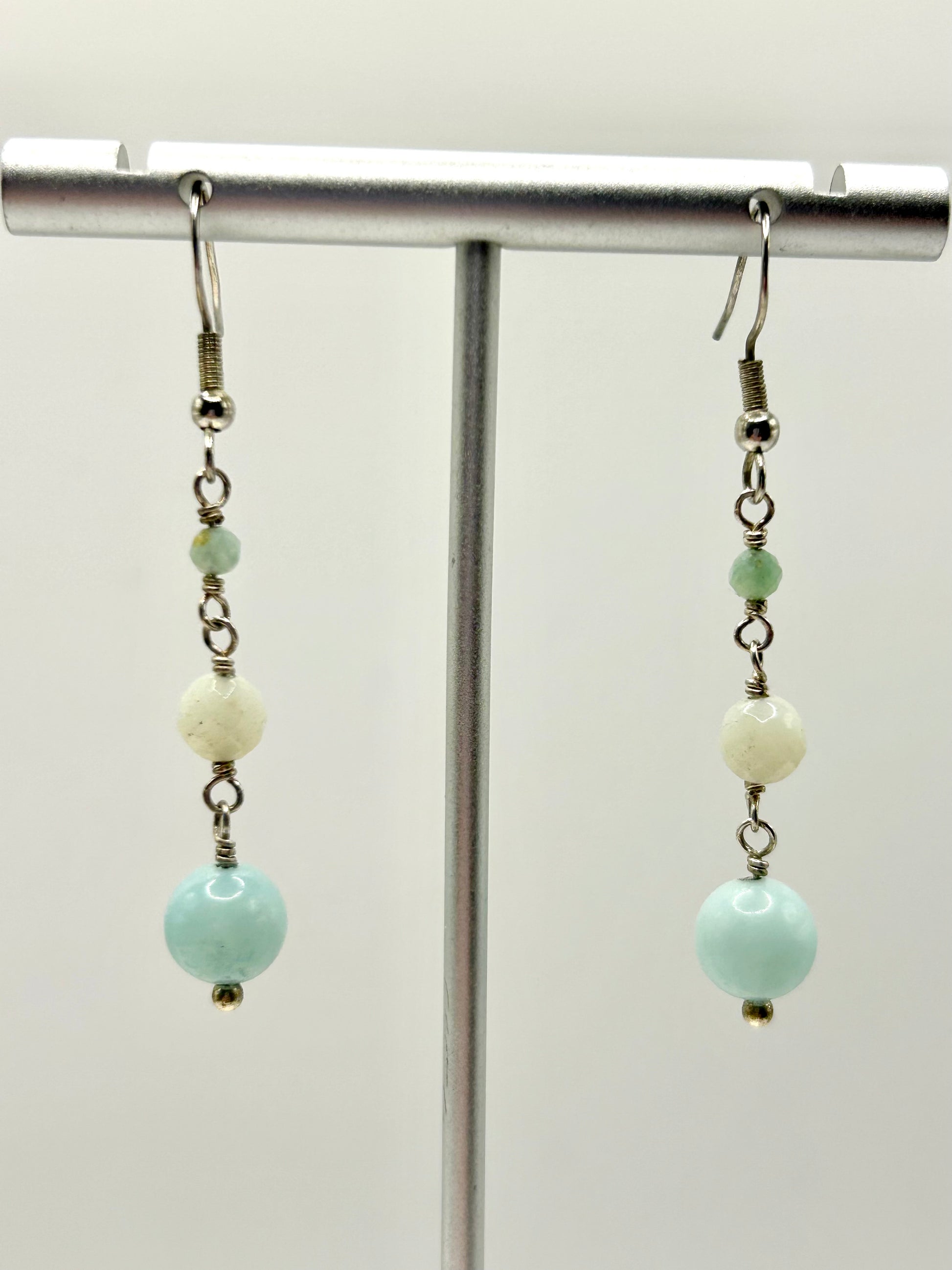 Dangly earrings with smooth & faceted amazonite beads and mini micro faceted jasper beads