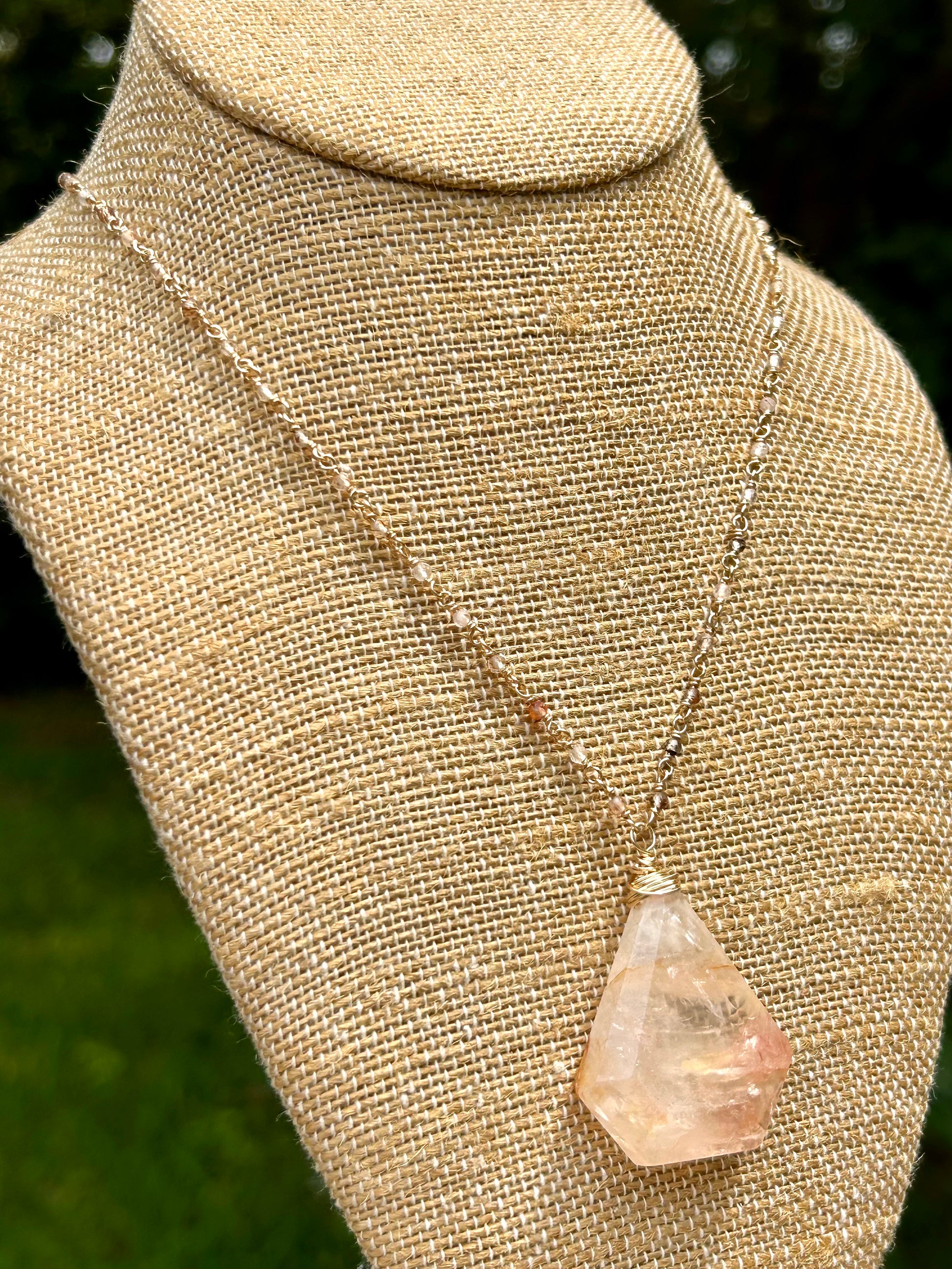 Each individual beaded gemstone link is carefully wire wrapped by myself and connected to the next. This is a very long and tedious method, but I believe it creates so much beautiful detail in each jewelry piece. I hope this gives you some extra appreciation for your necklace, knowing that so much time and patience has gone into the process of creating every little piece of it.