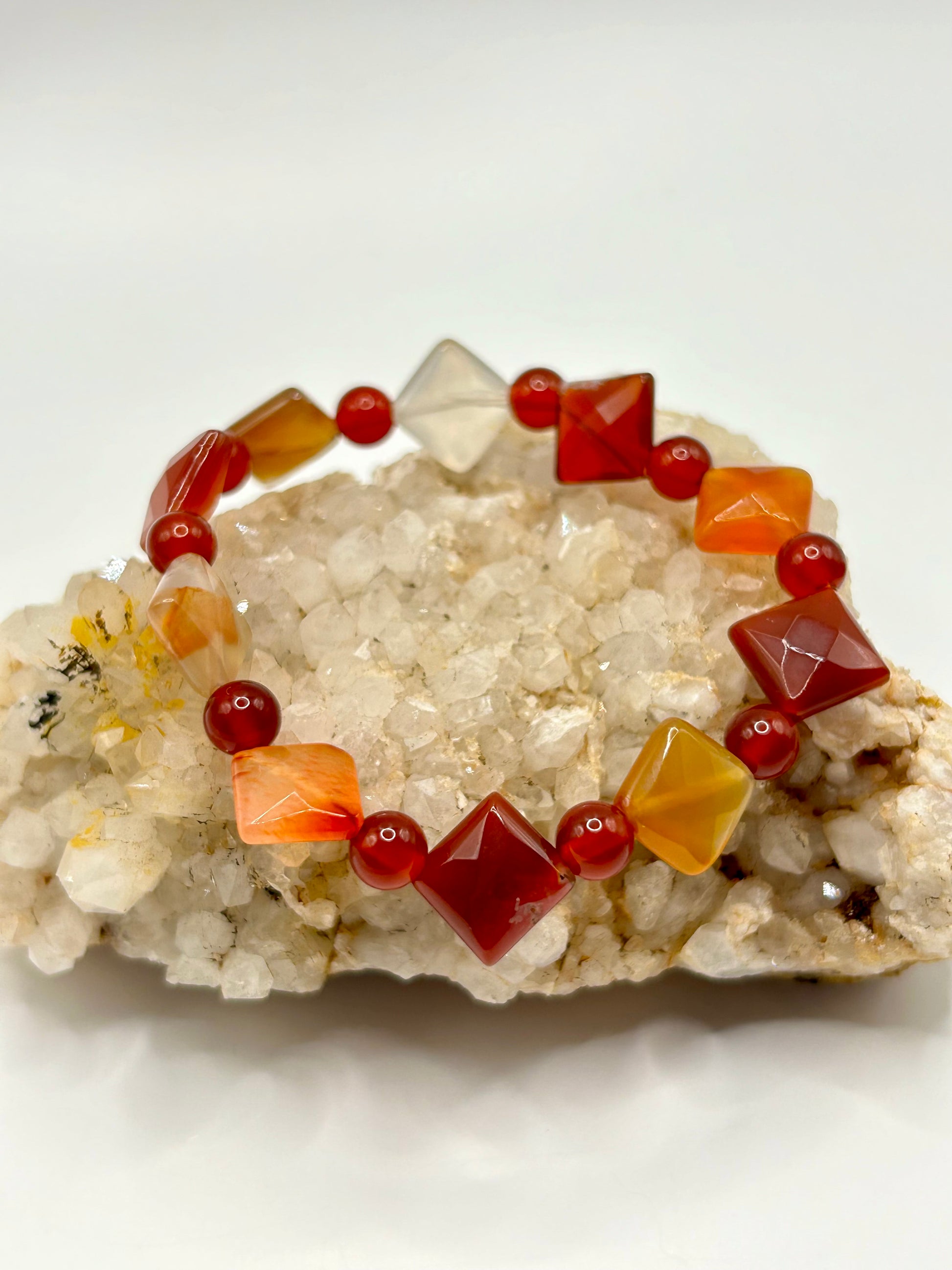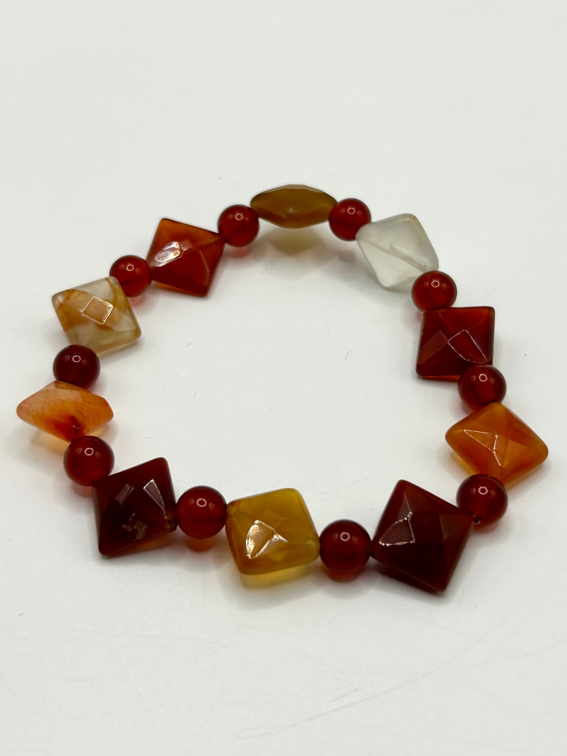 Beaded bracelet on elastic cord with Carnelian gemstones