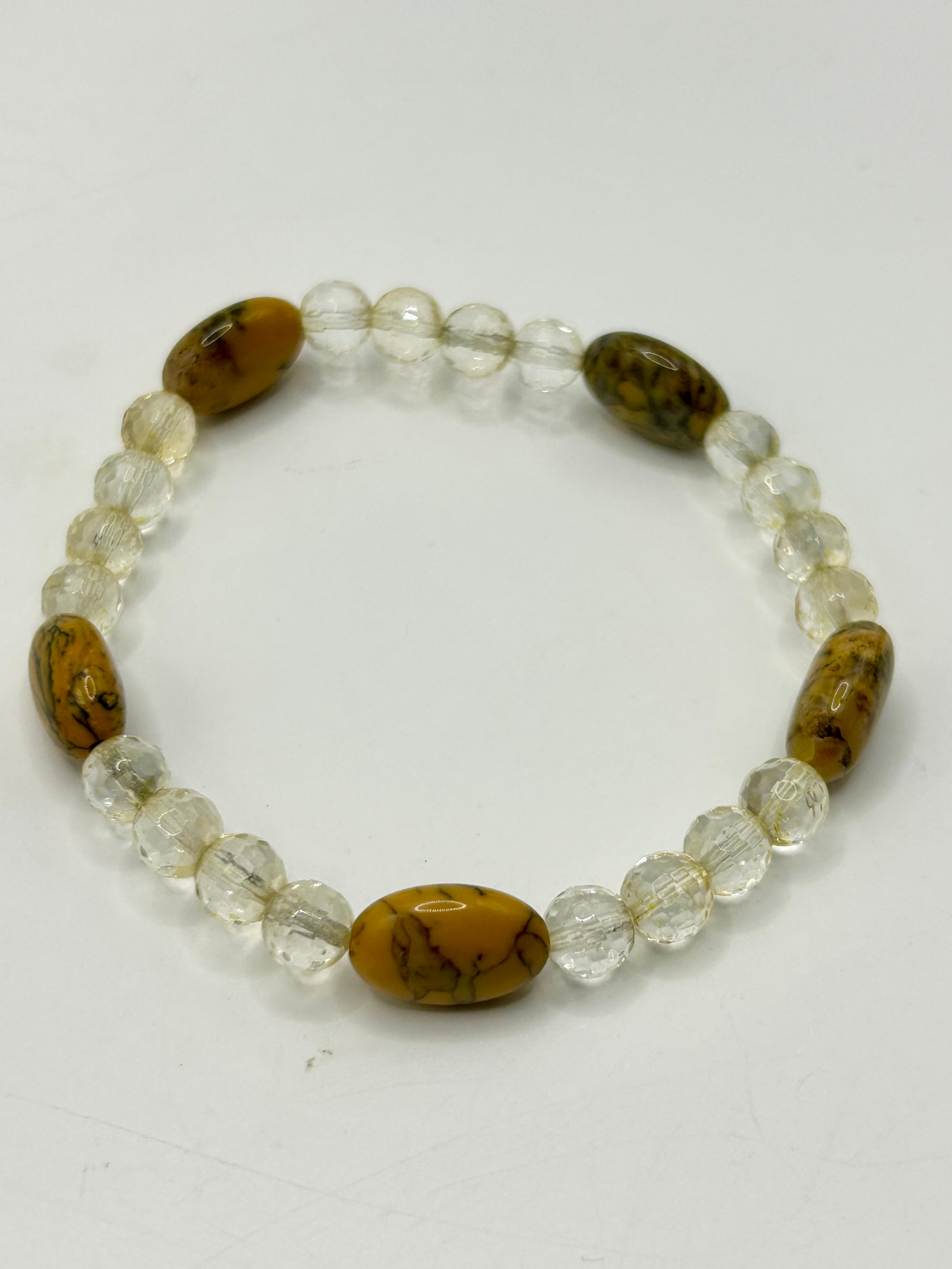 Beaded bracelet on elastic cord with faceted round Citrine & oval shaped Yellow Jasper gemstones