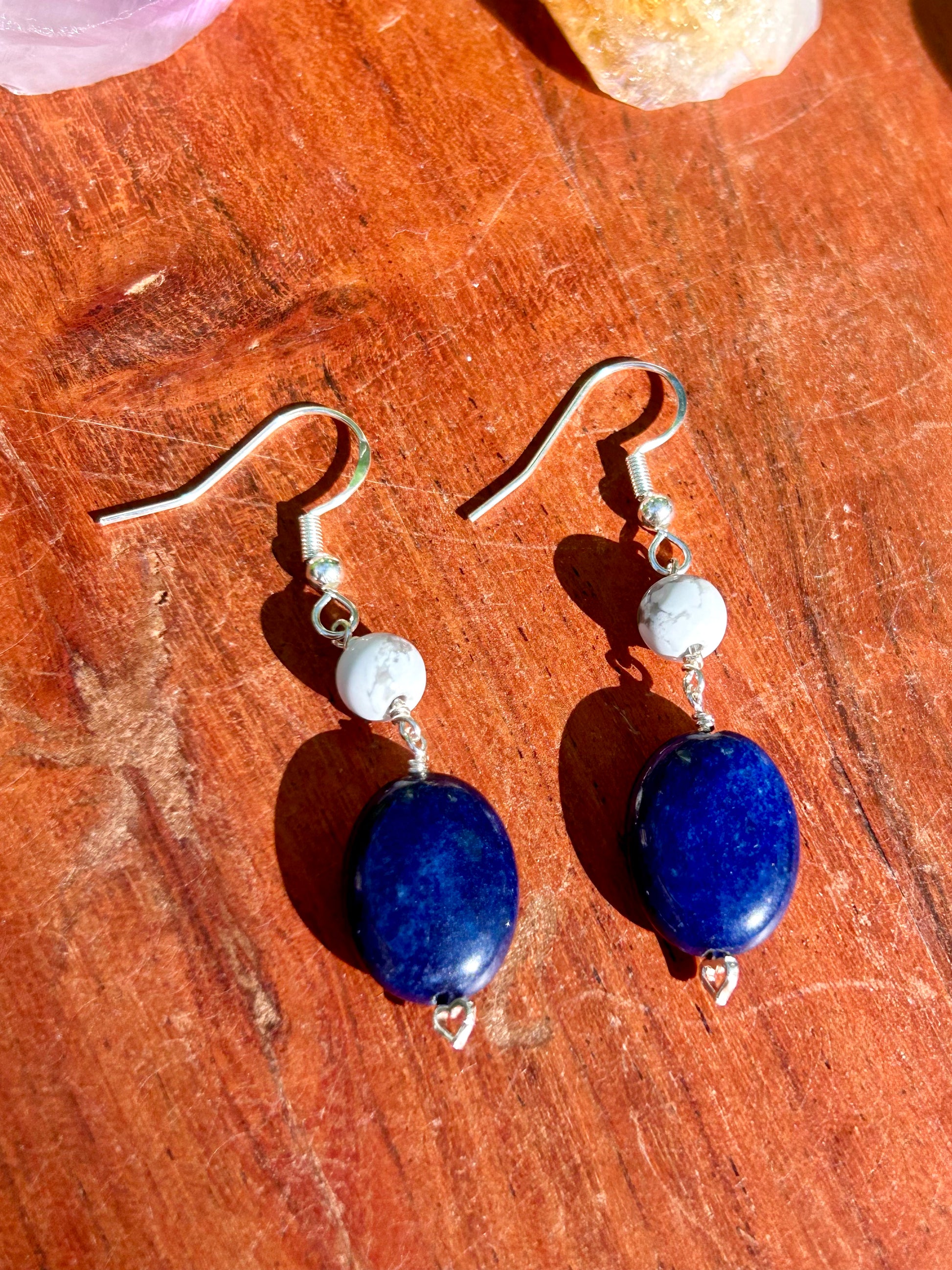 Dangly earrings with Lapis Lazuli and White Howlite gemstones