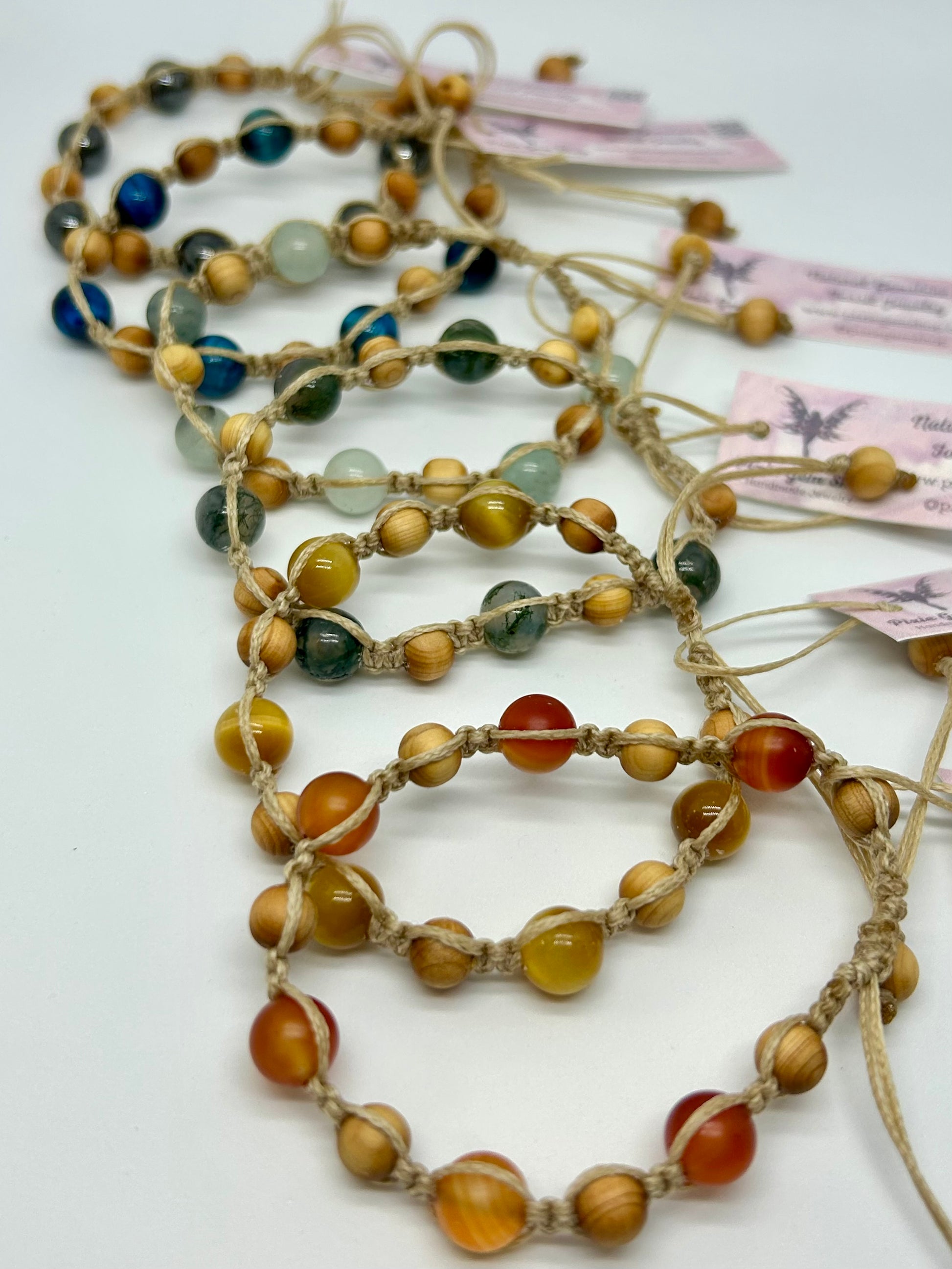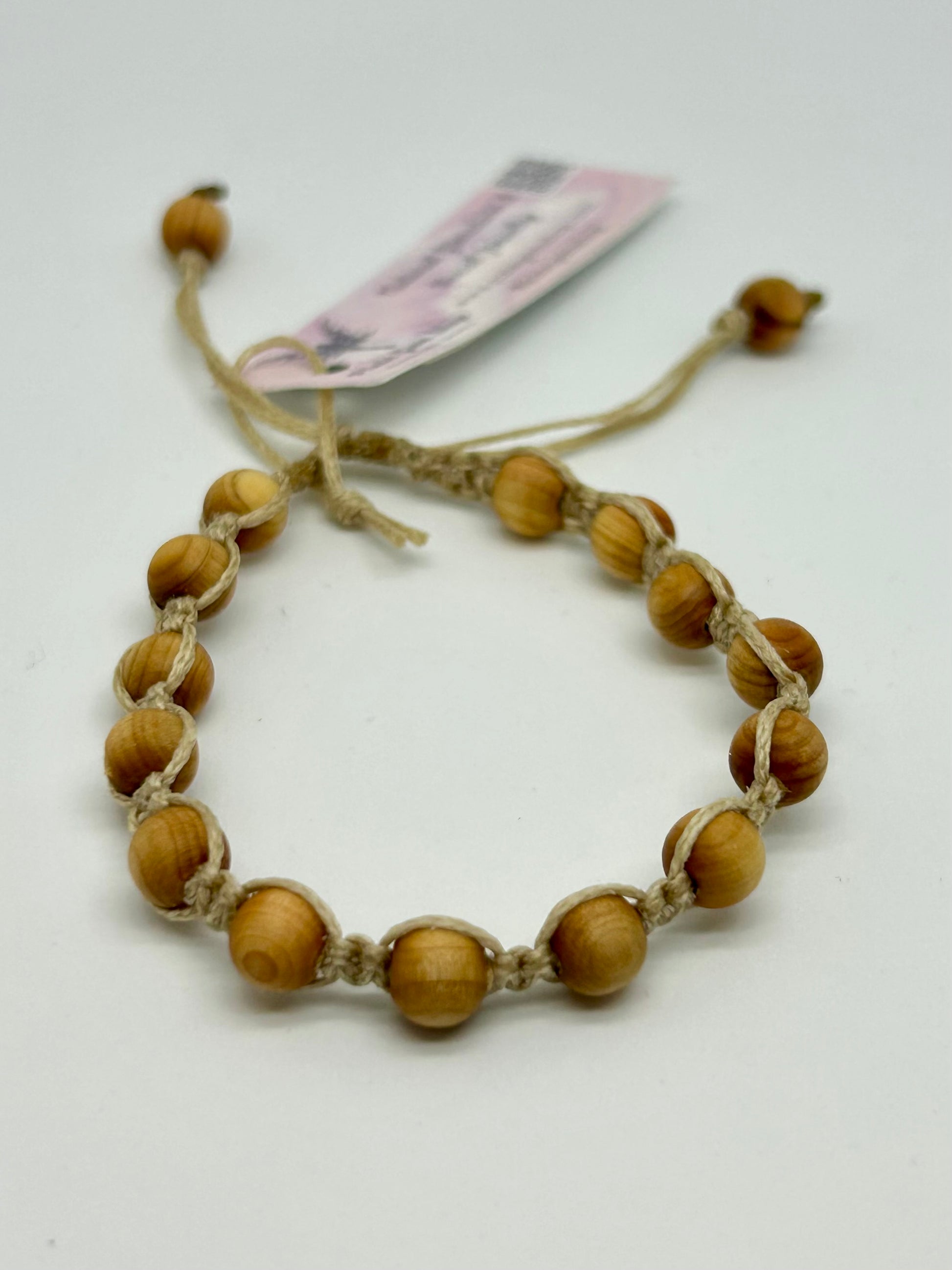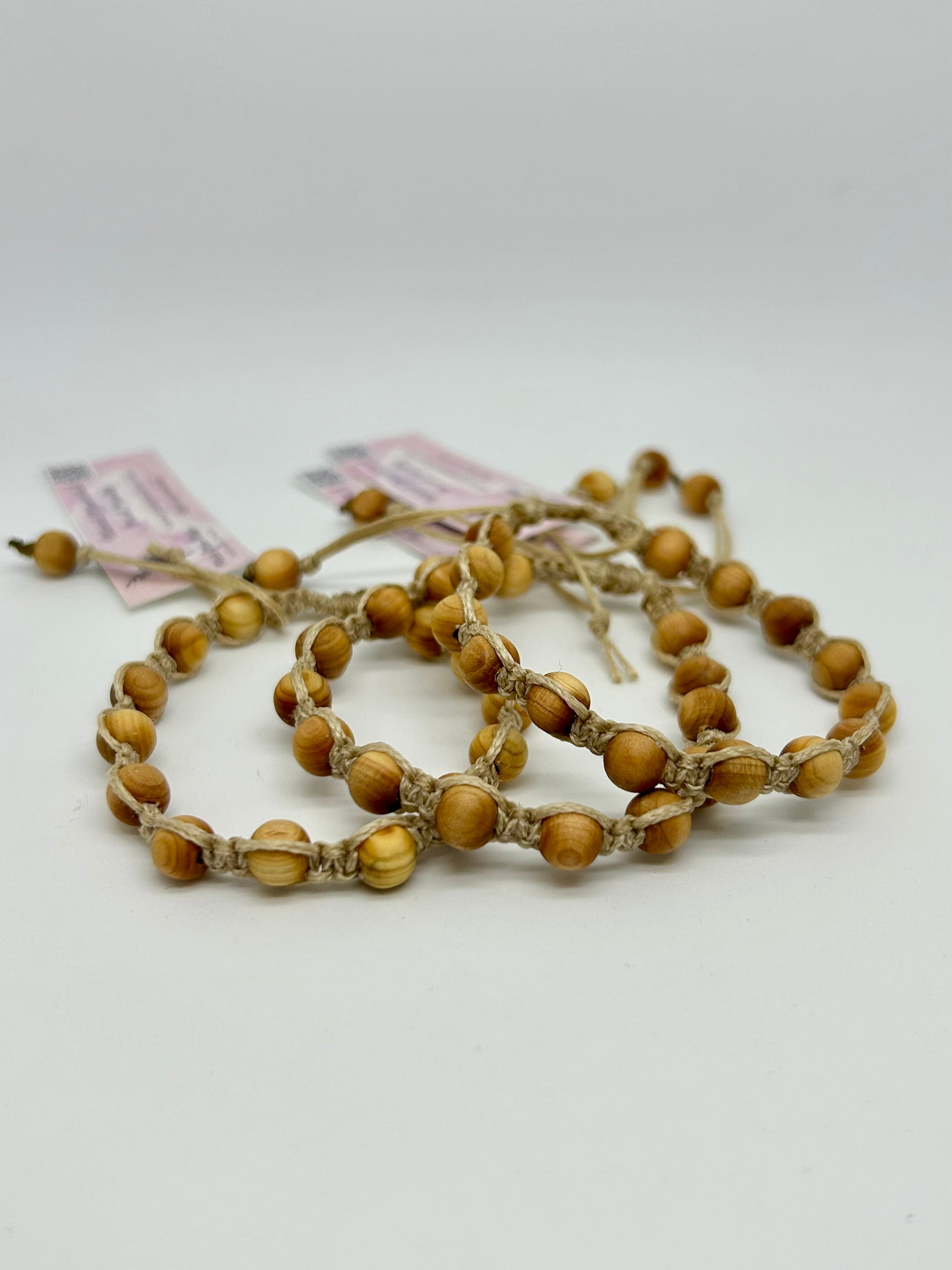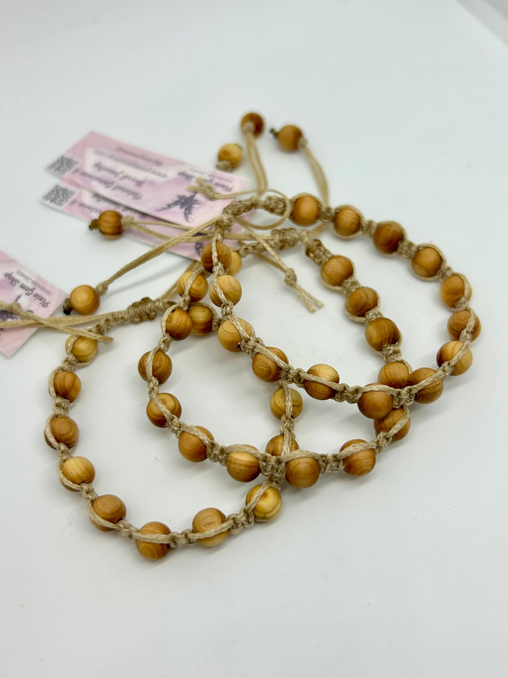 Hand-knotted aromatherapy bracelets made with natural cedar wood beads. Each bracelet is fully adjustable with a sliding knot closure to comfortably fit any size wrist.