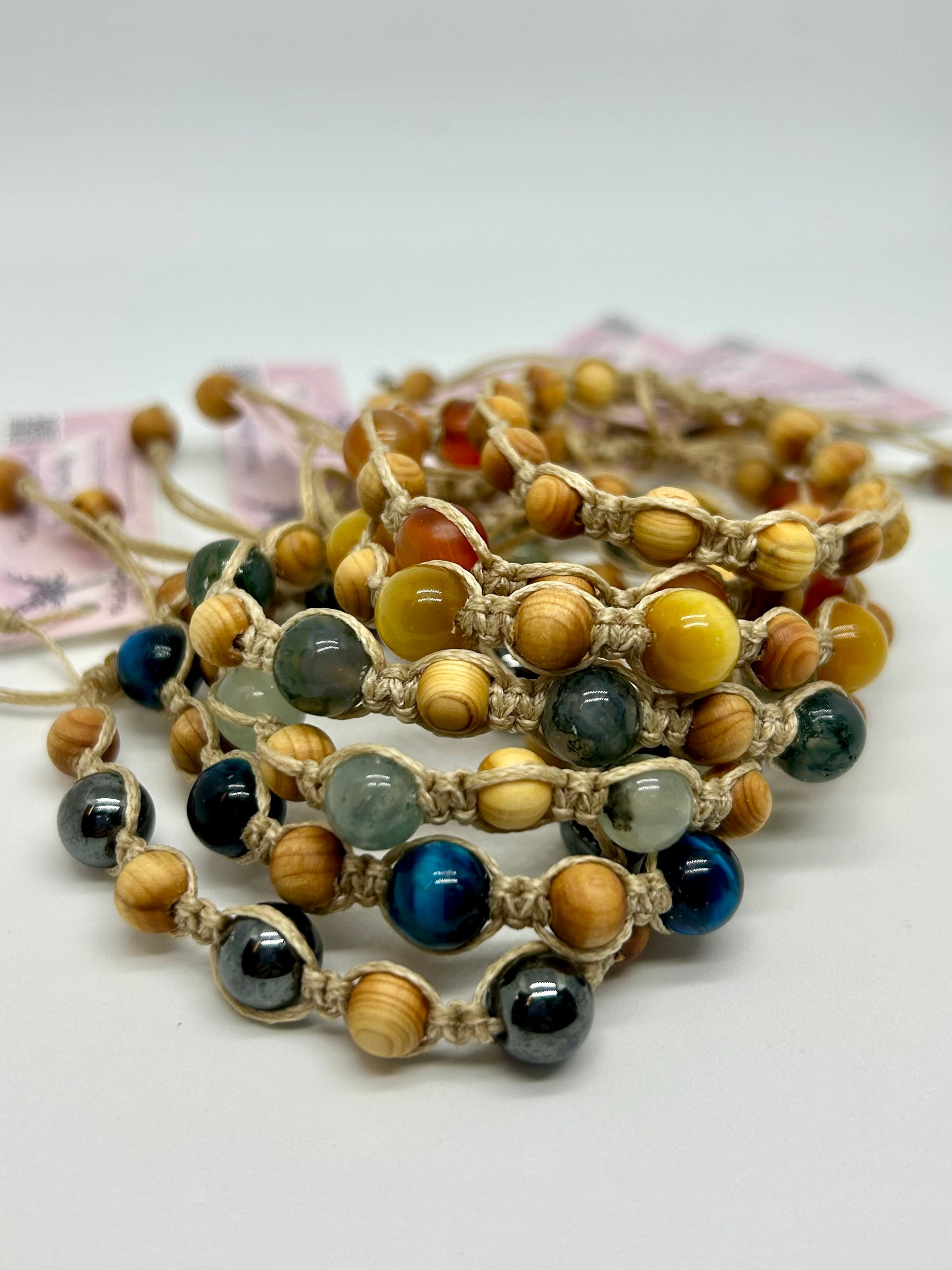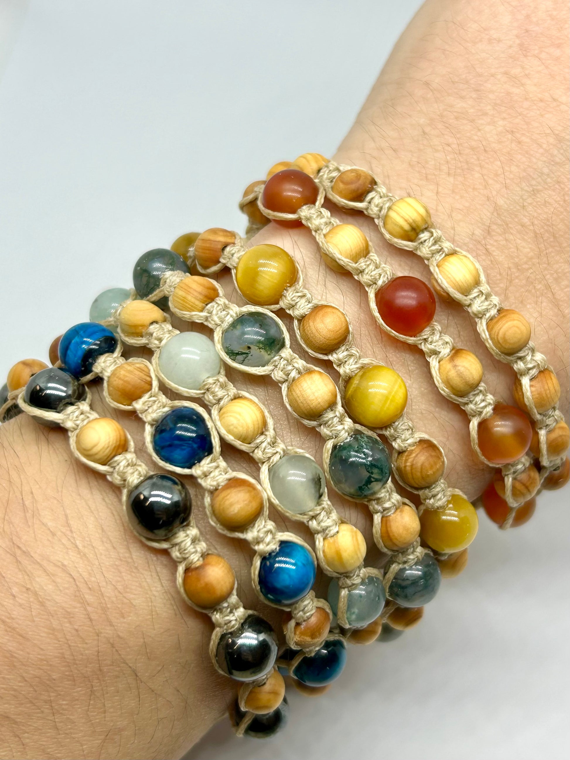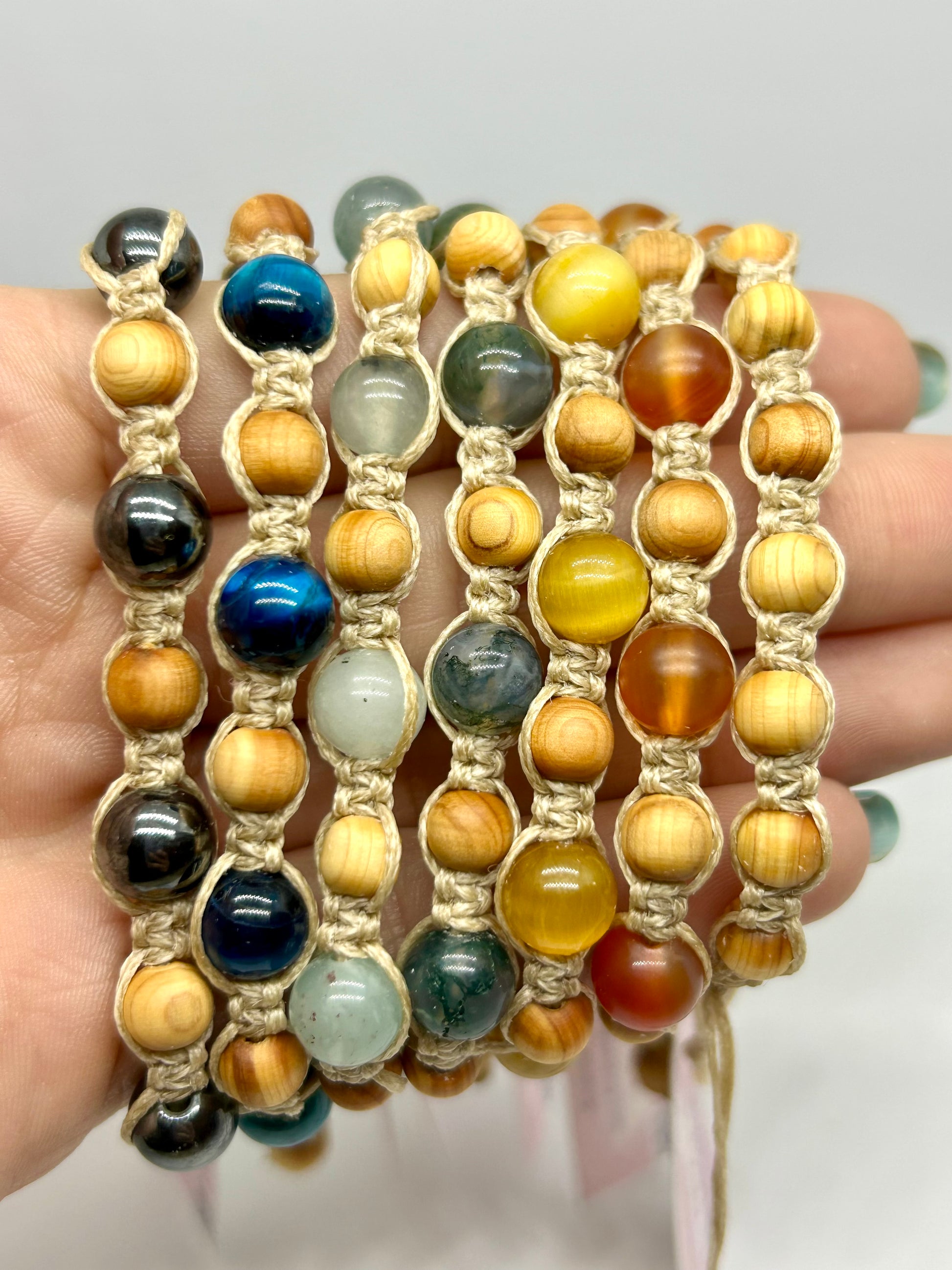 Gemstone Cedar Wood Knotted Aromatherapy Bracelets