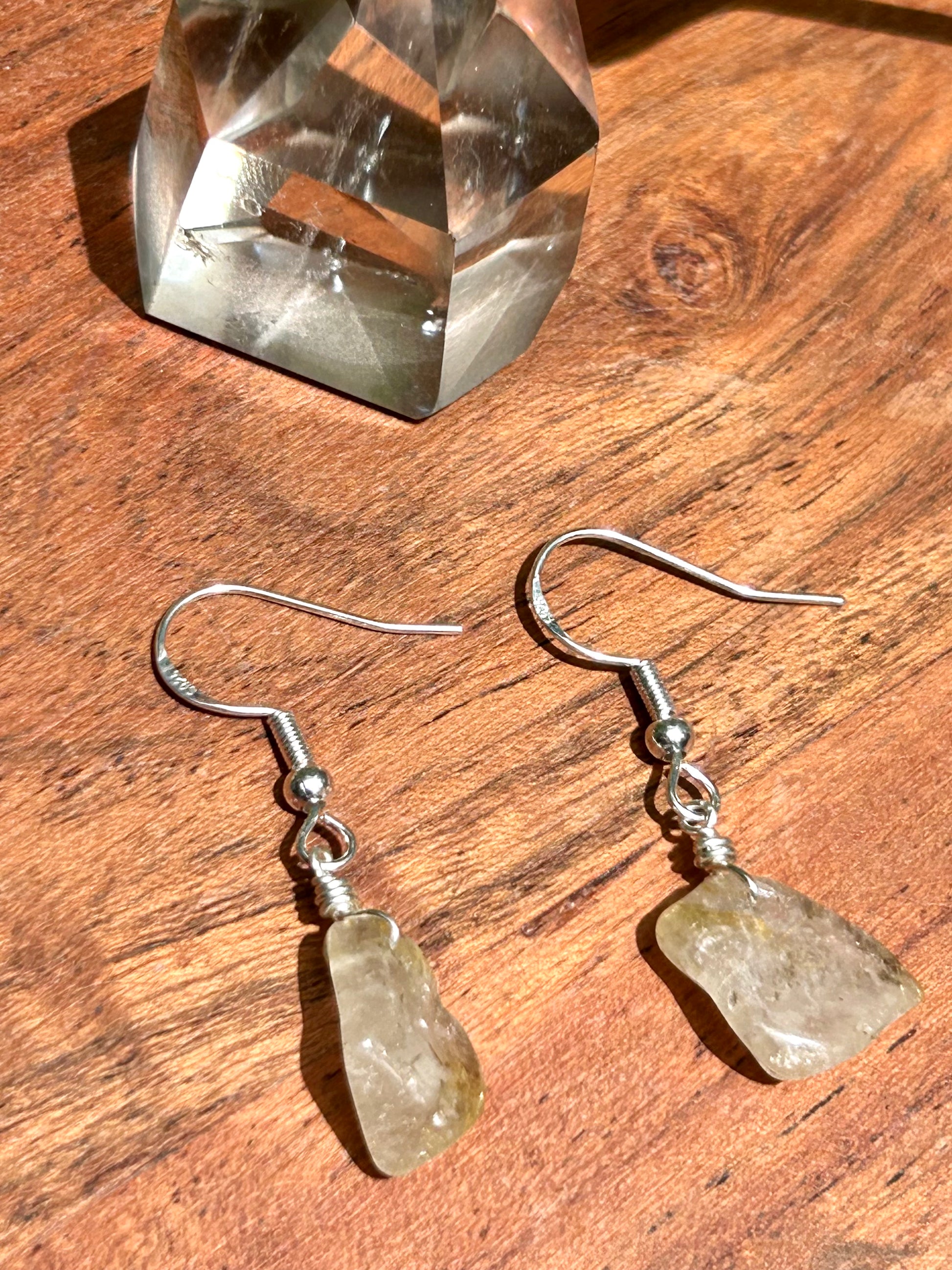 Gold Rutilated Quartz Gemstone Sterling Silver Dangly Earrings