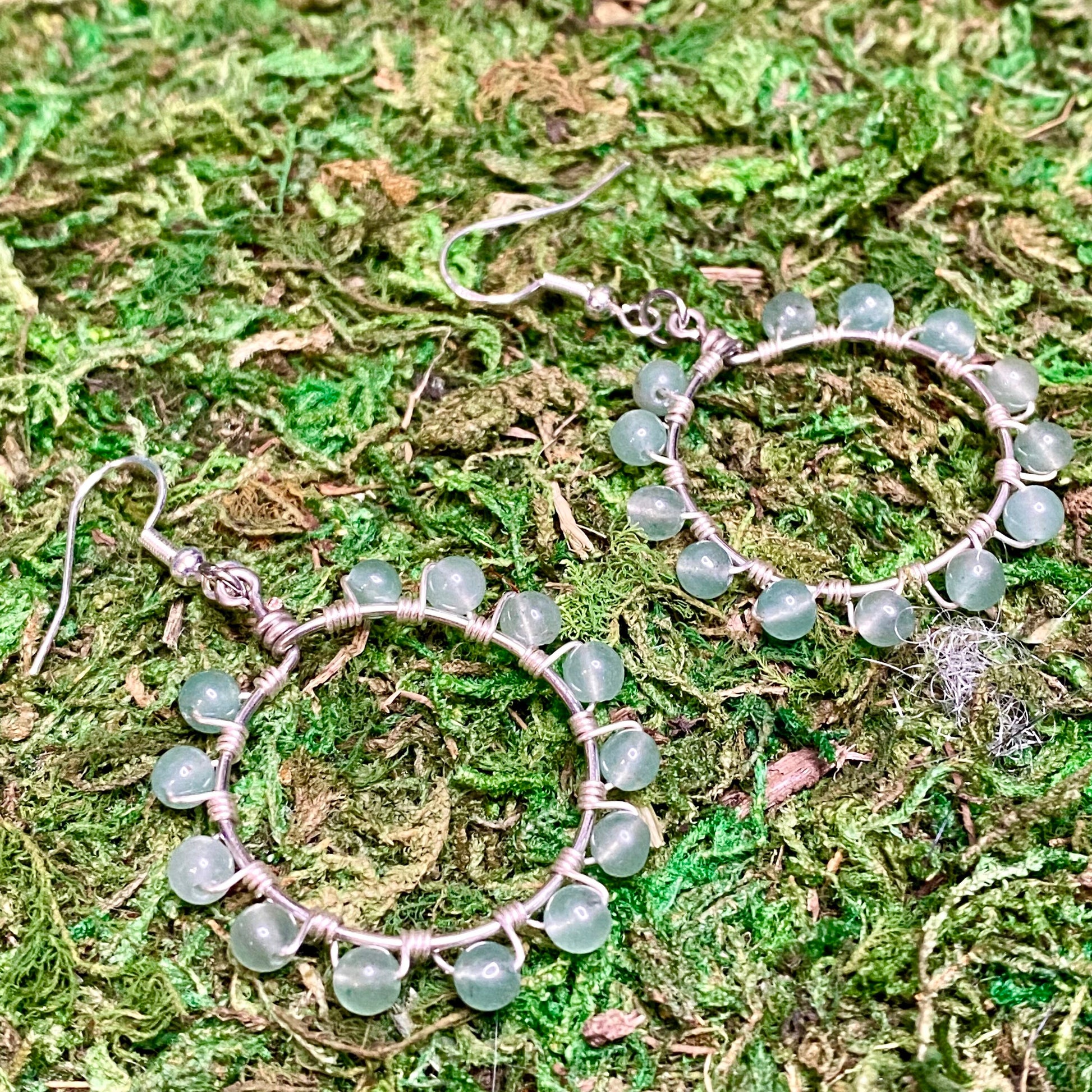 Dangly wire wrapped hoop earrings with green aventurine gemstone beads