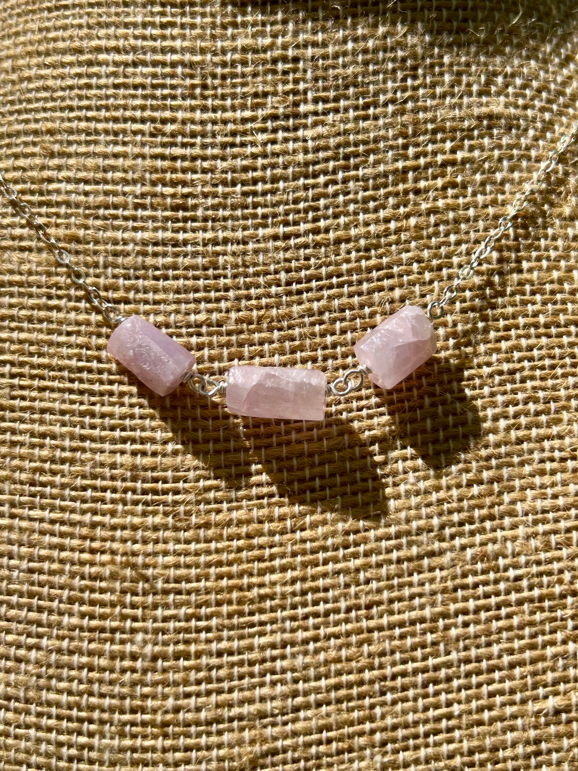 18” sterling silver chain with 3 Kunzite gemstone beads