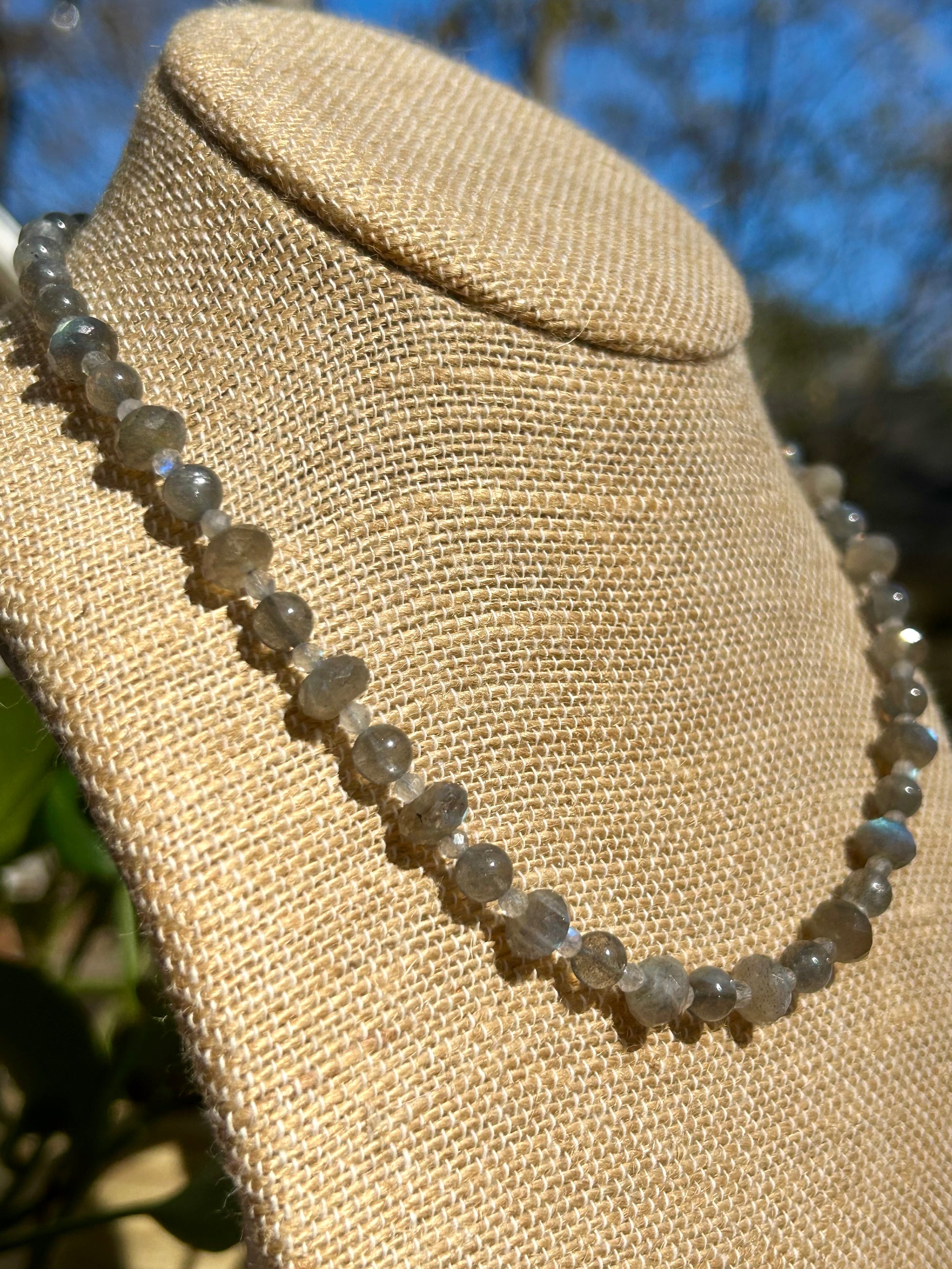 Labradorite Gemstone Sterling Silver Beaded Choker Necklace