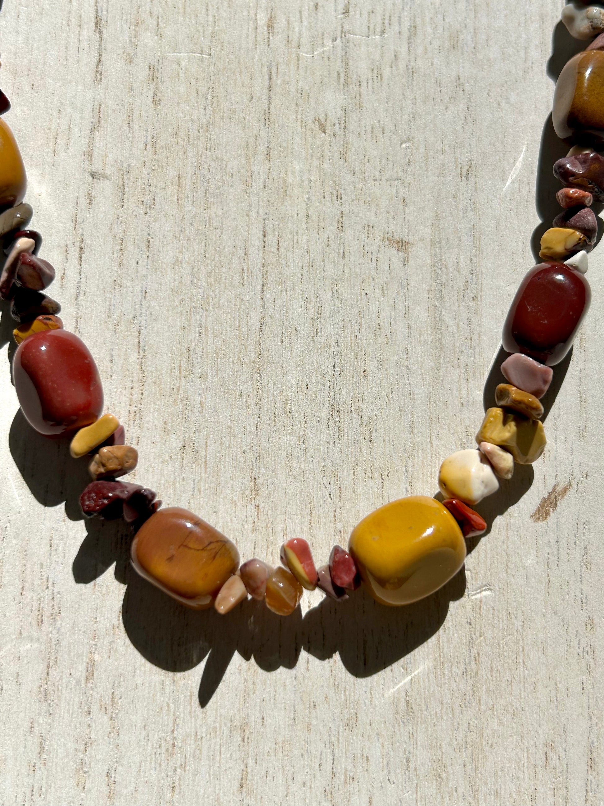 Beaded necklace with Mookaite Jasper gemstone pebbles & chips