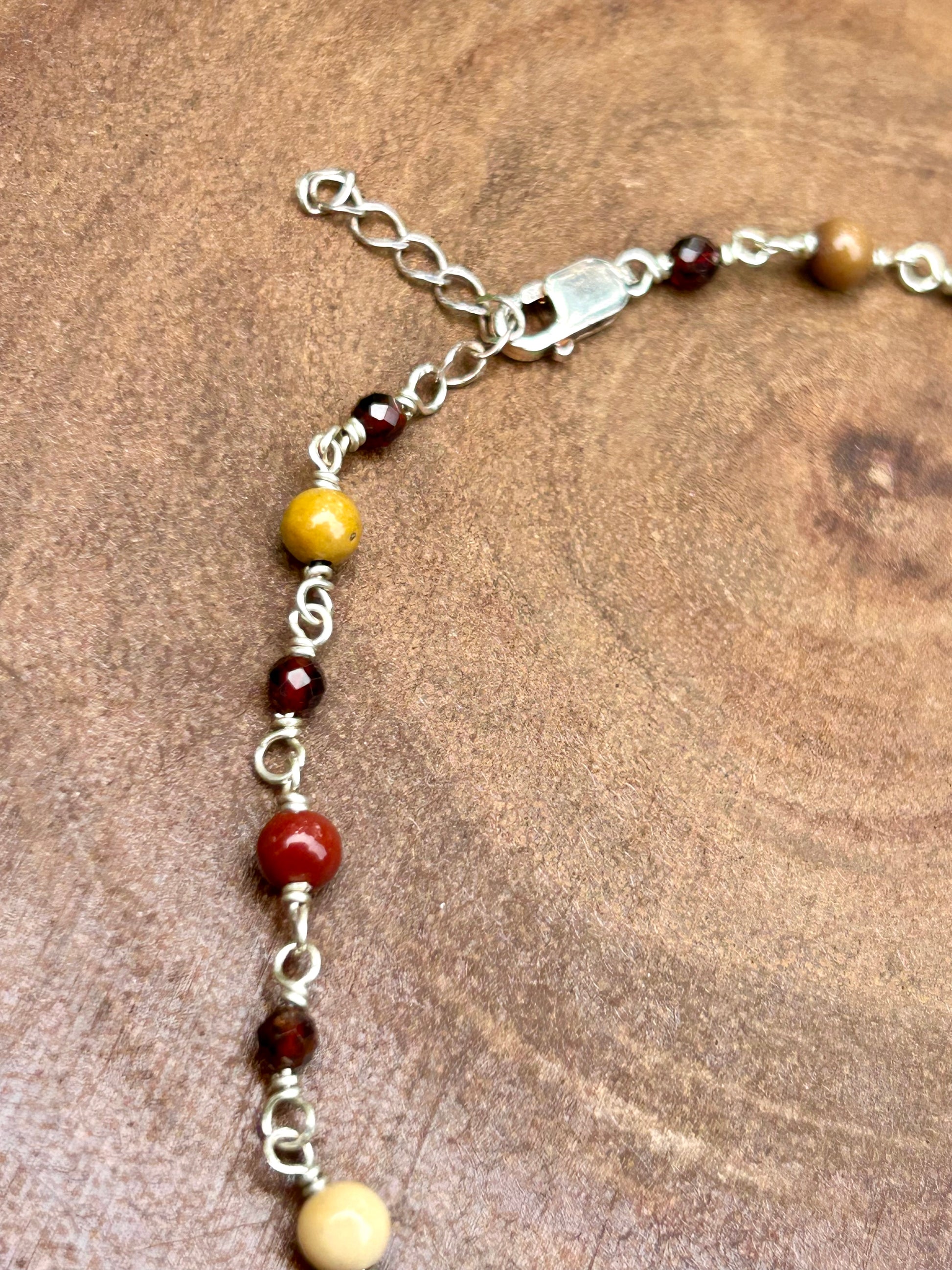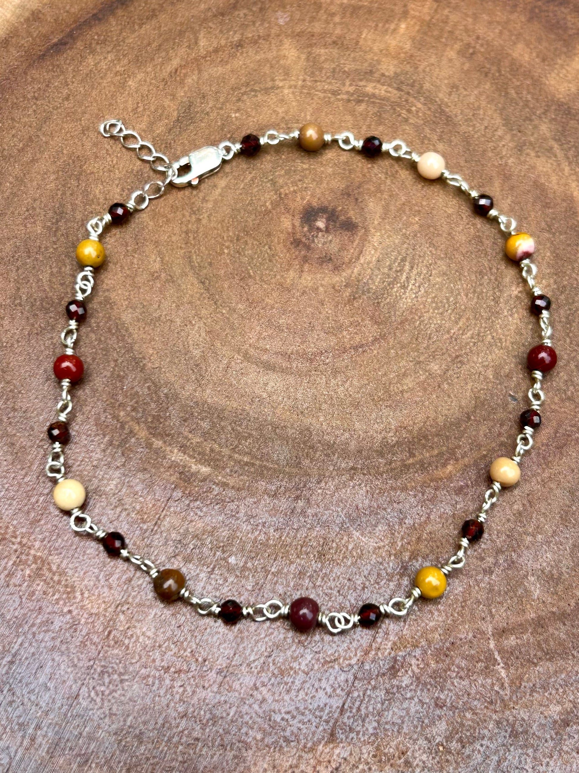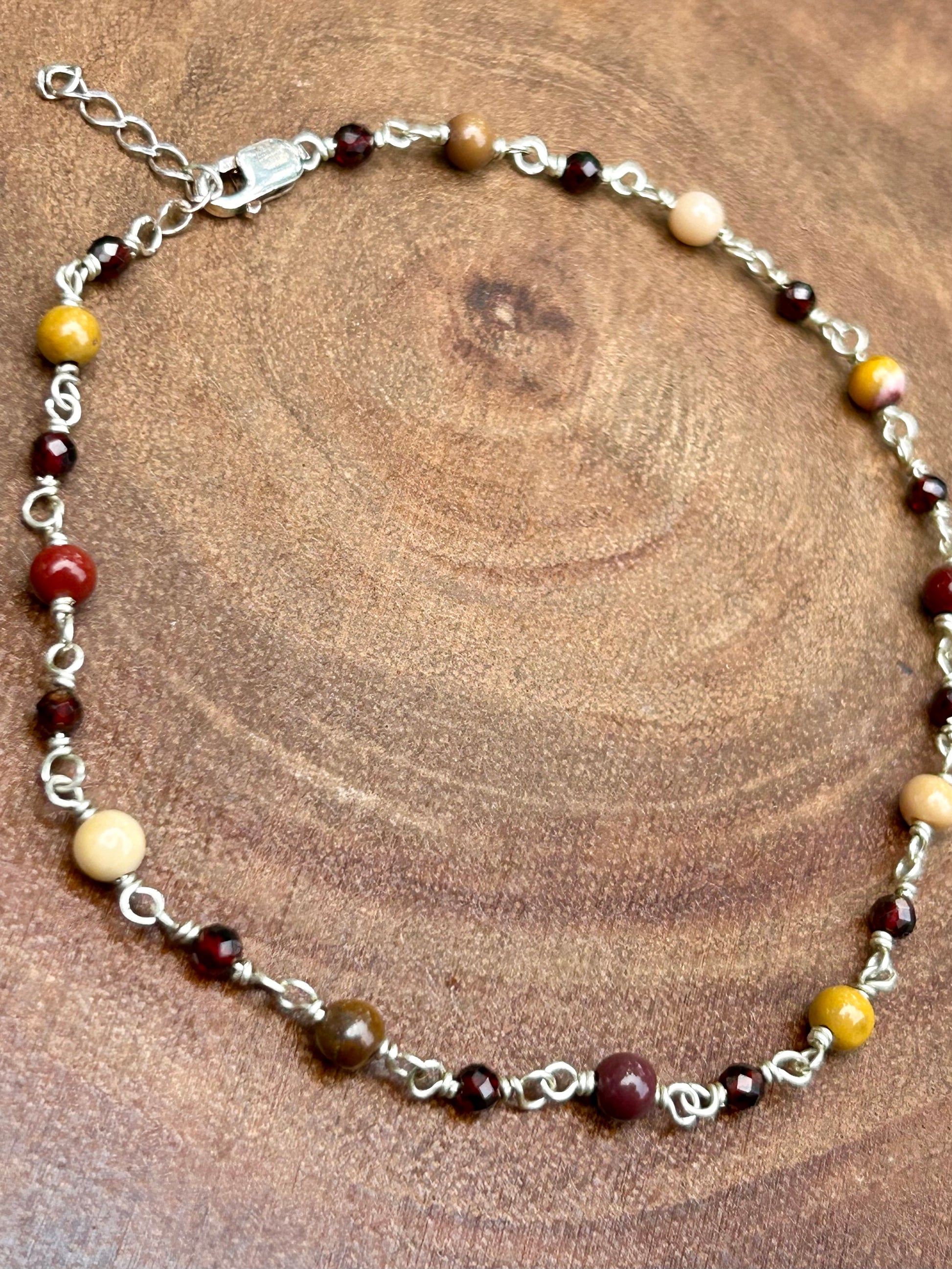 Mookaite Jasper & Garnet Chain Link Gemstone 925 Sterling Silver Anklet