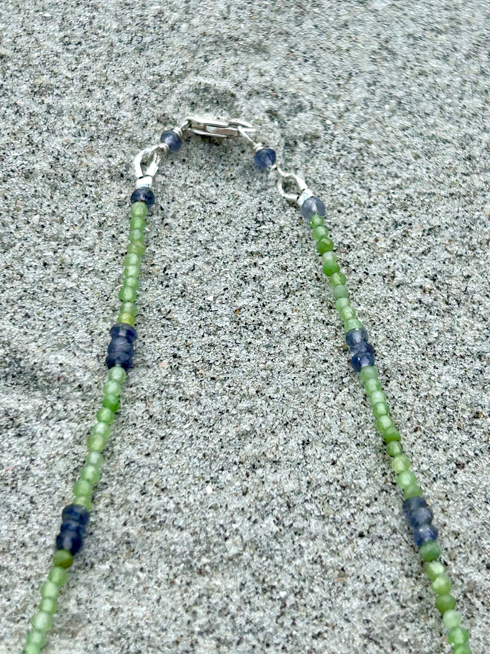 Olive Shell, Nephrite Jade & Iolite Gemstone Beaded Necklace Sterling Silver