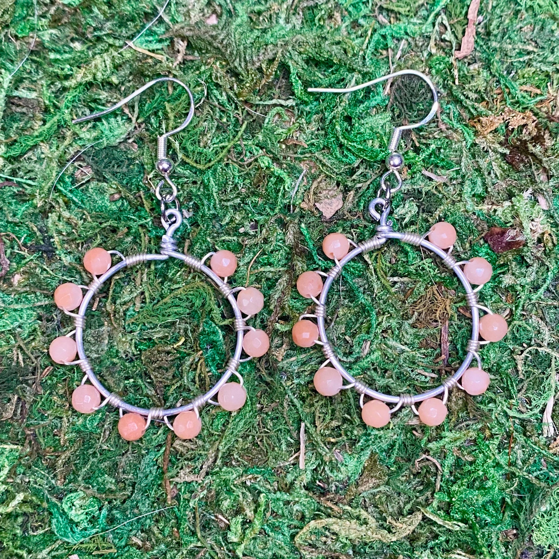 Dangly wire wrapped hoop earrings with red aventurine gemstone beads