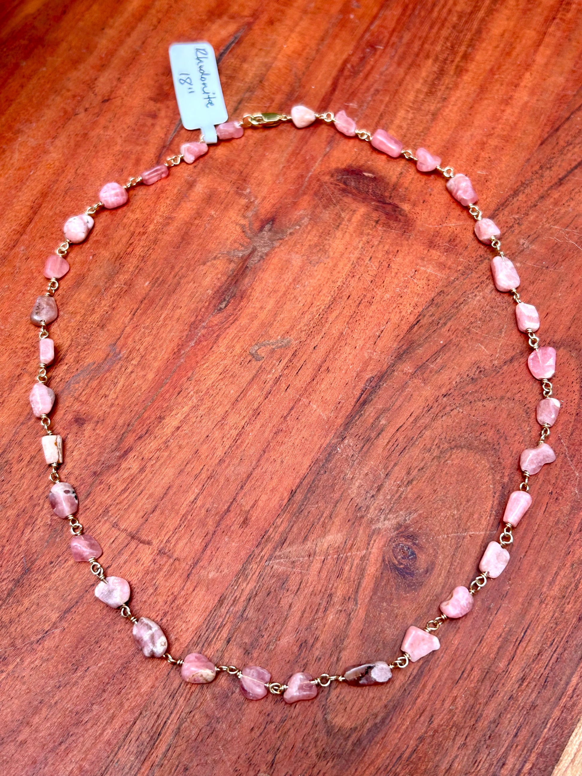 Chain link necklace made with genuine Rhodonite pebble gemstone beads