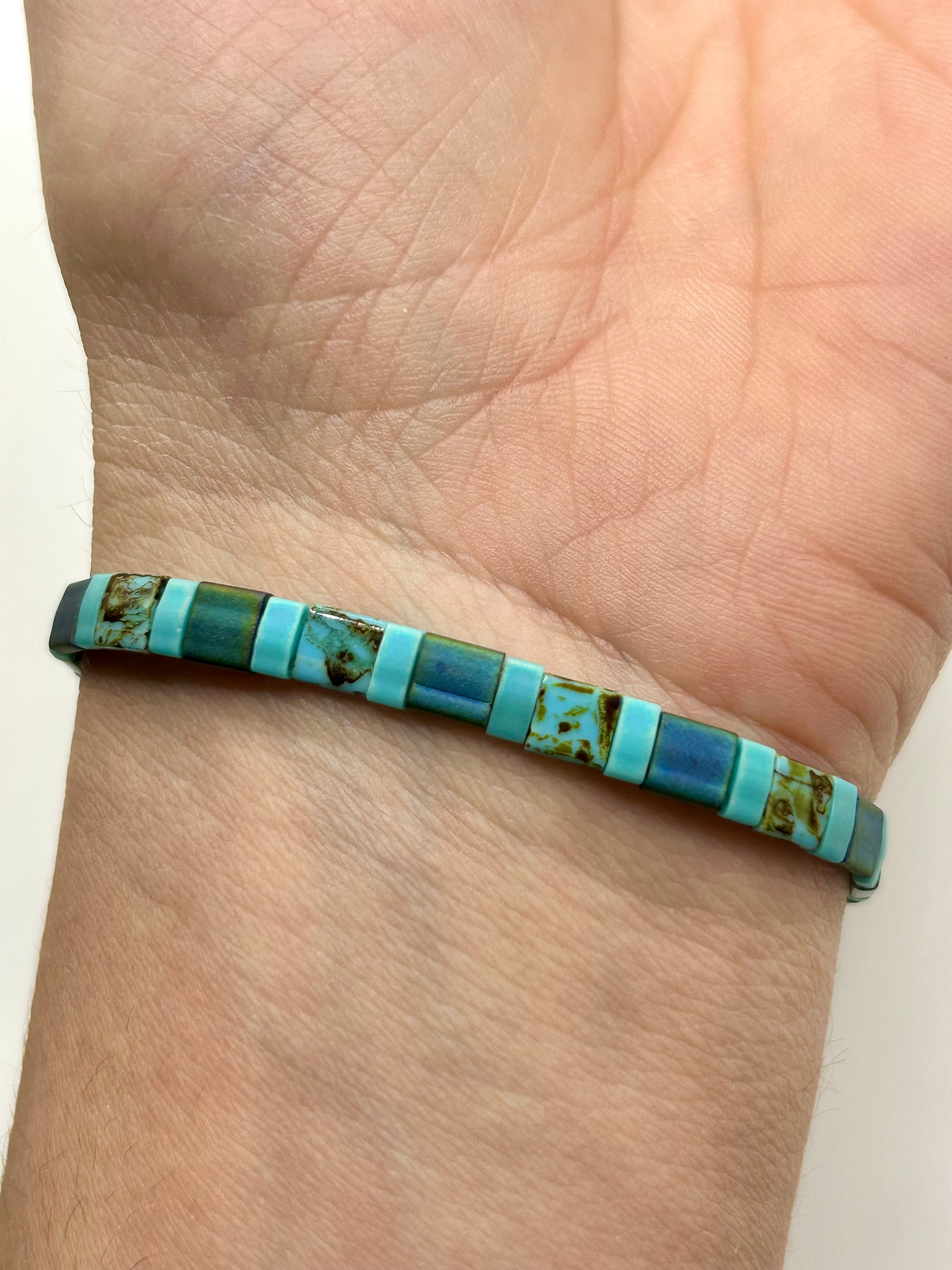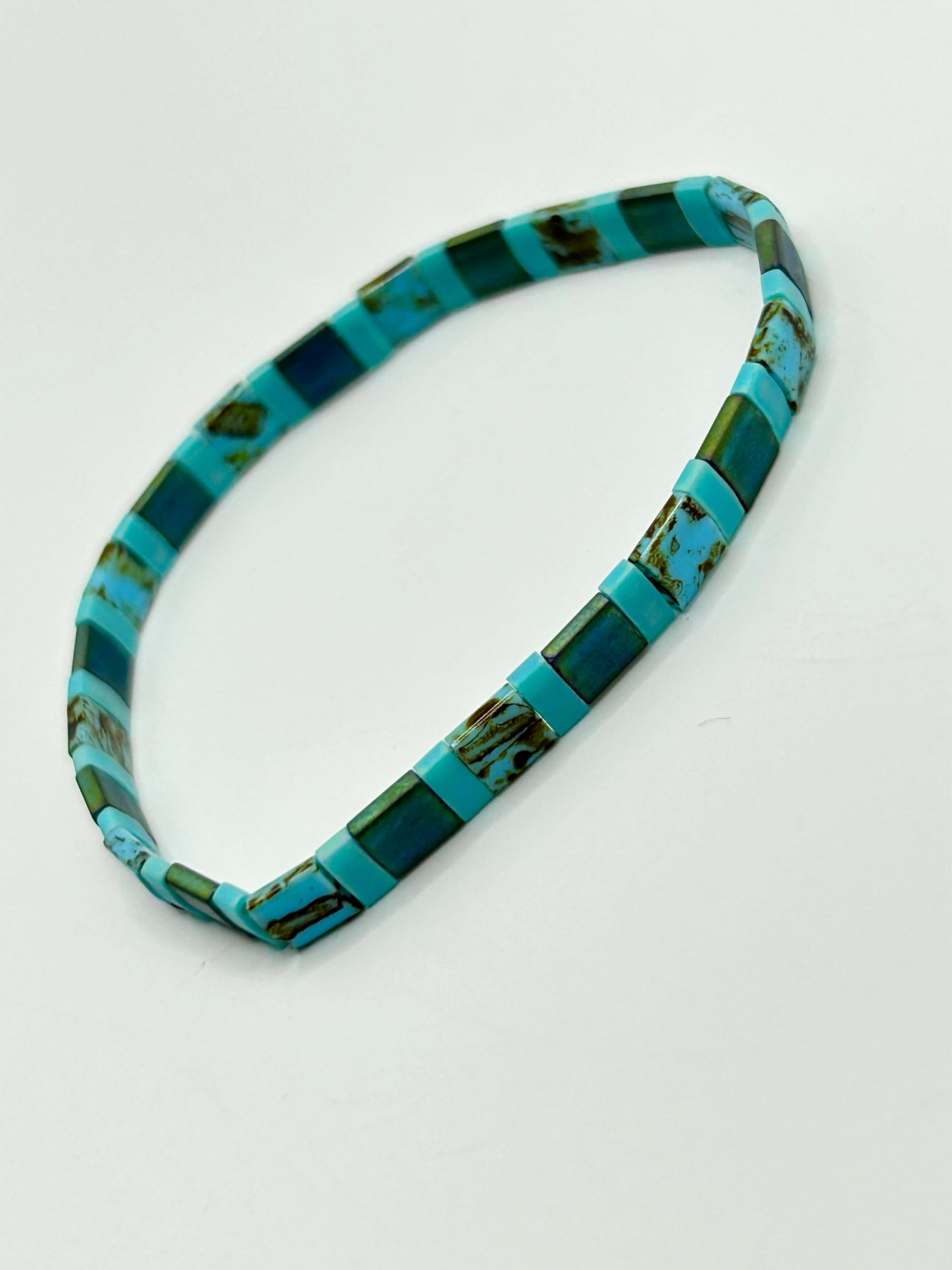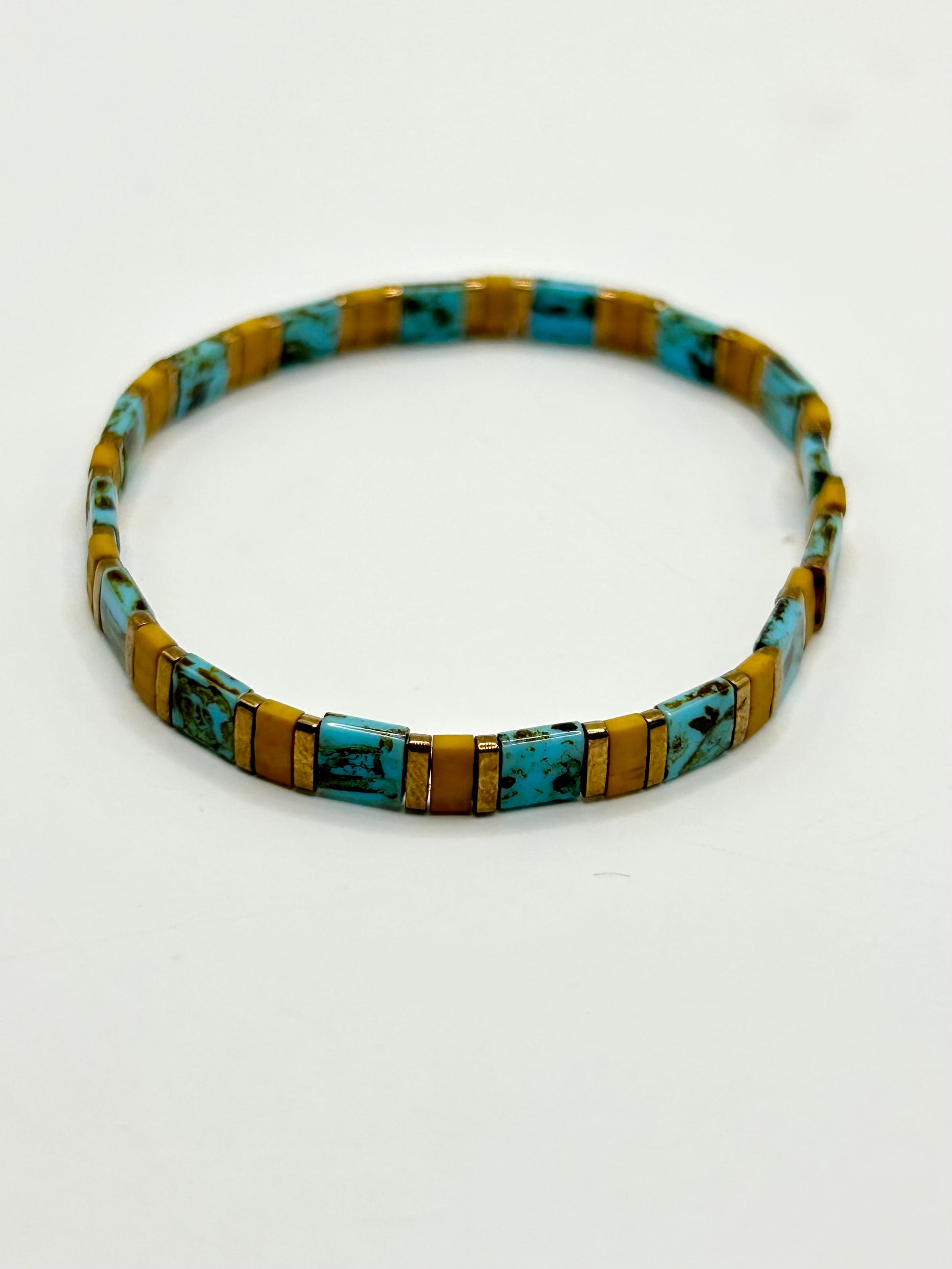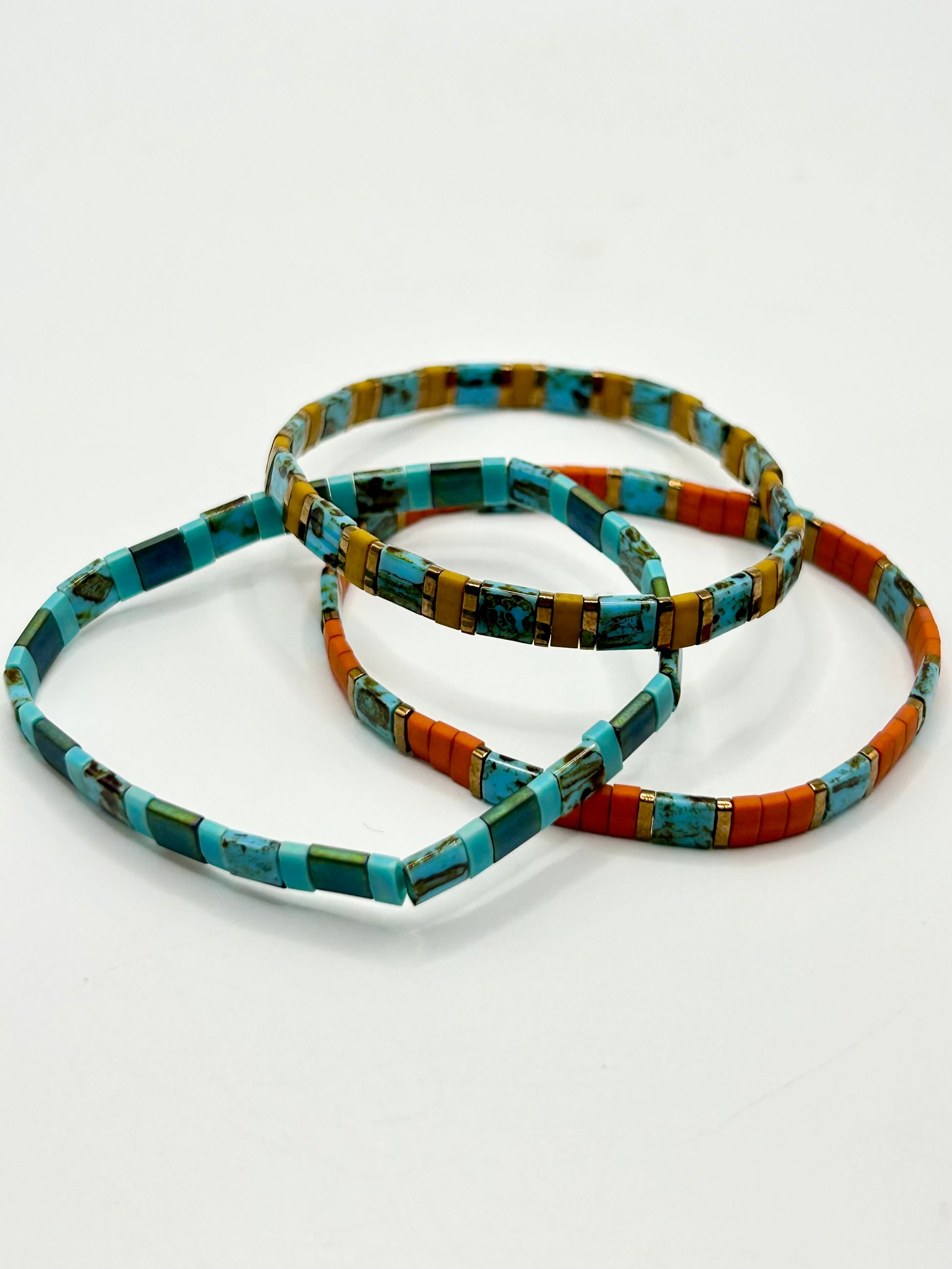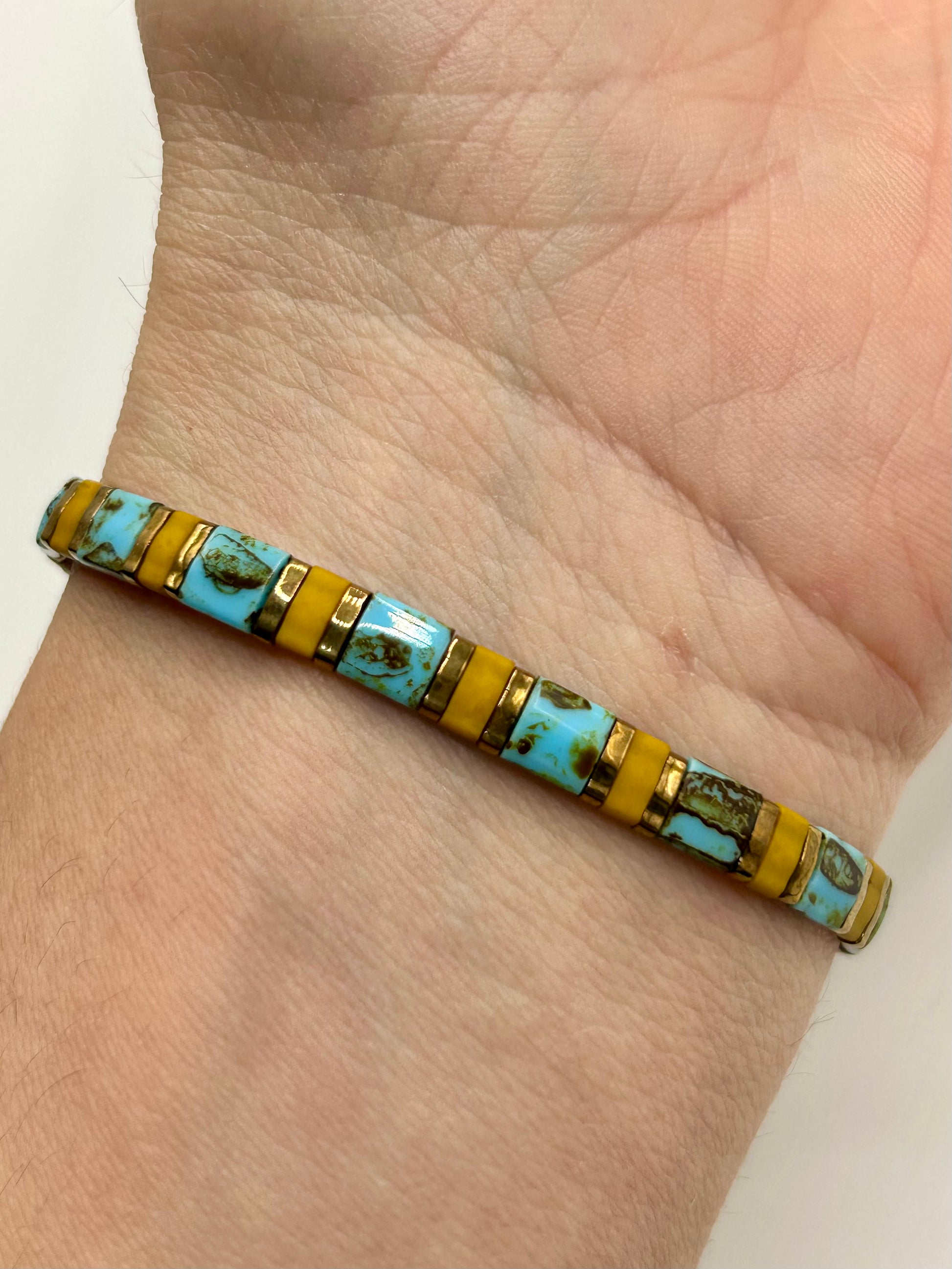 Sunset Turquoise Tila Glass Bead Elastic Bracelet Collection