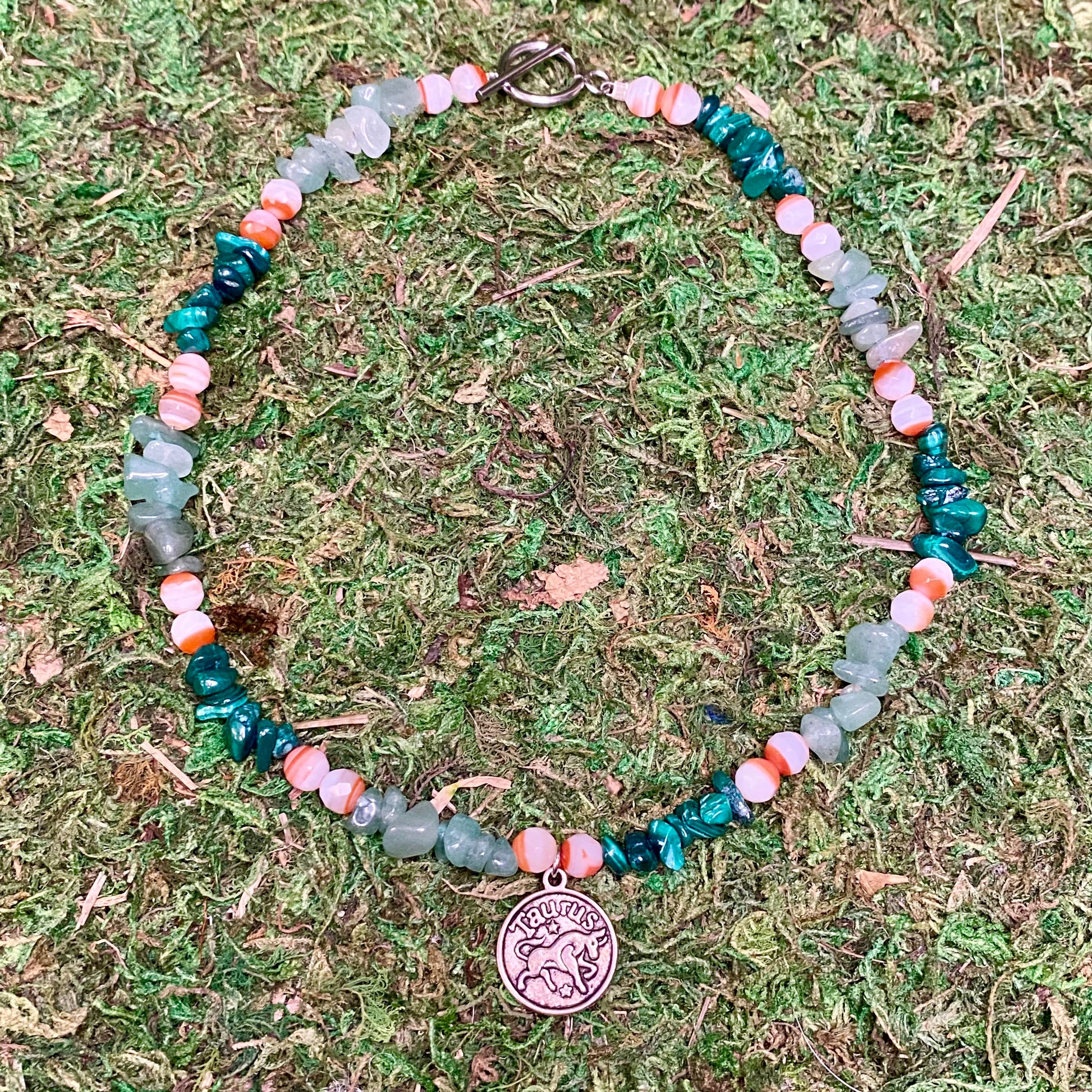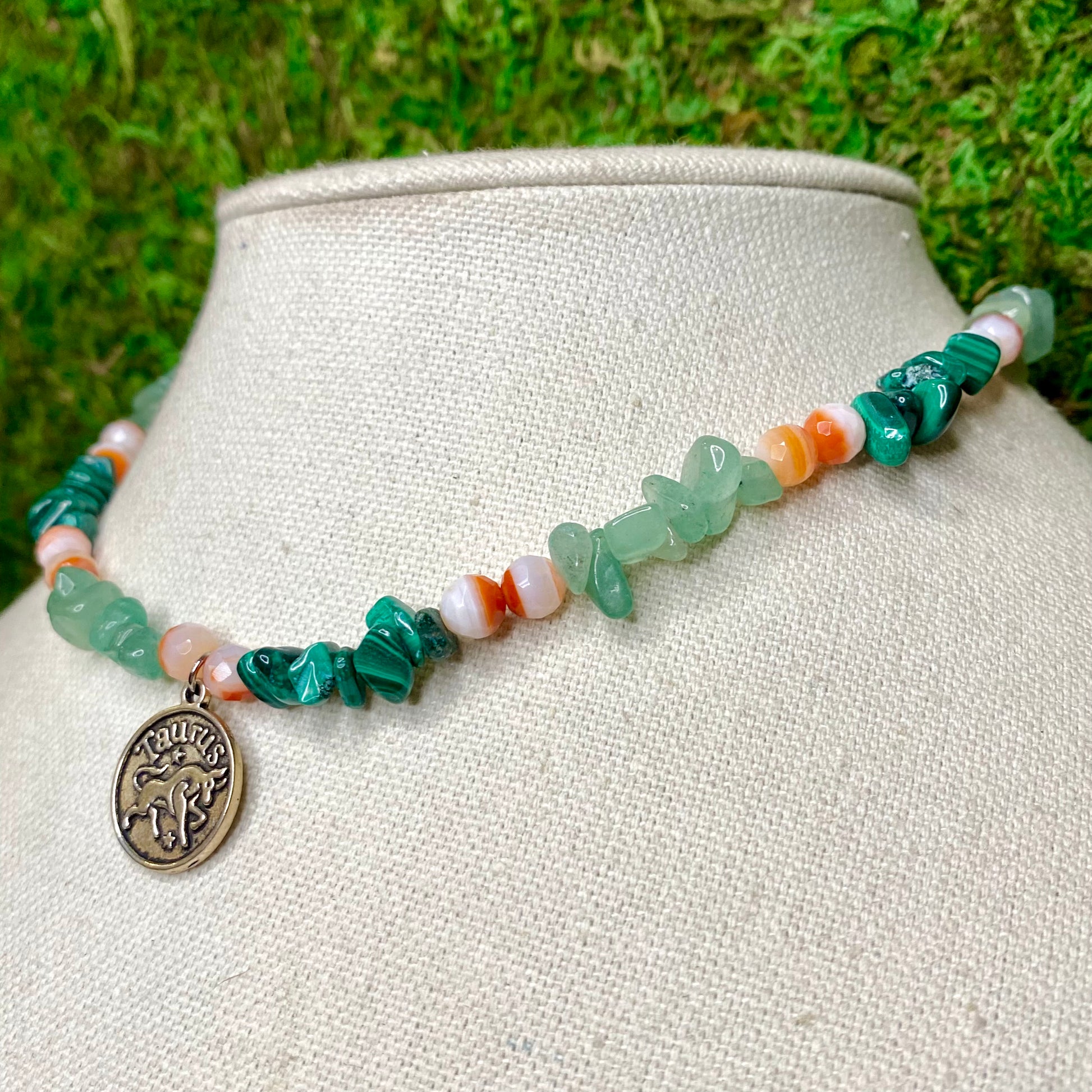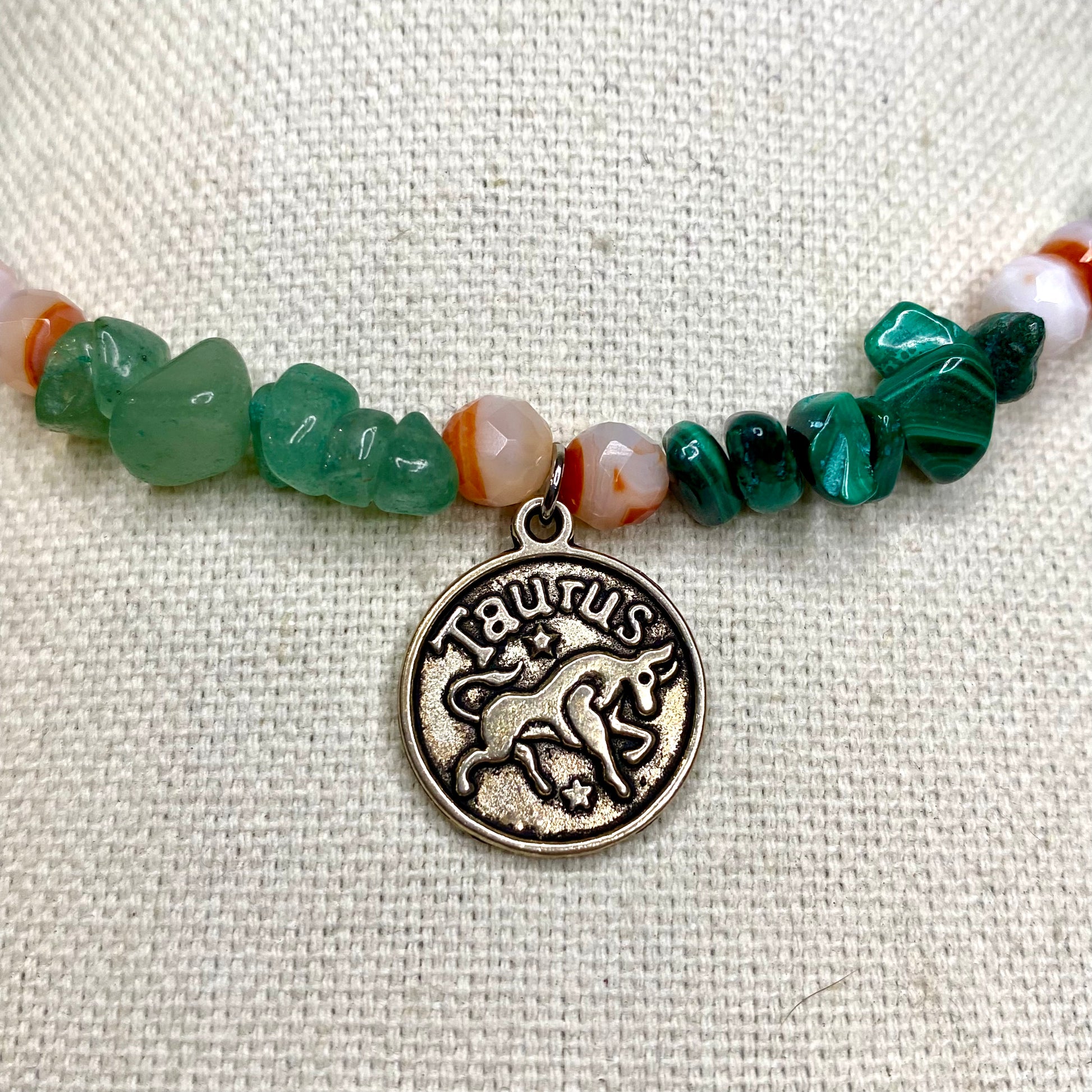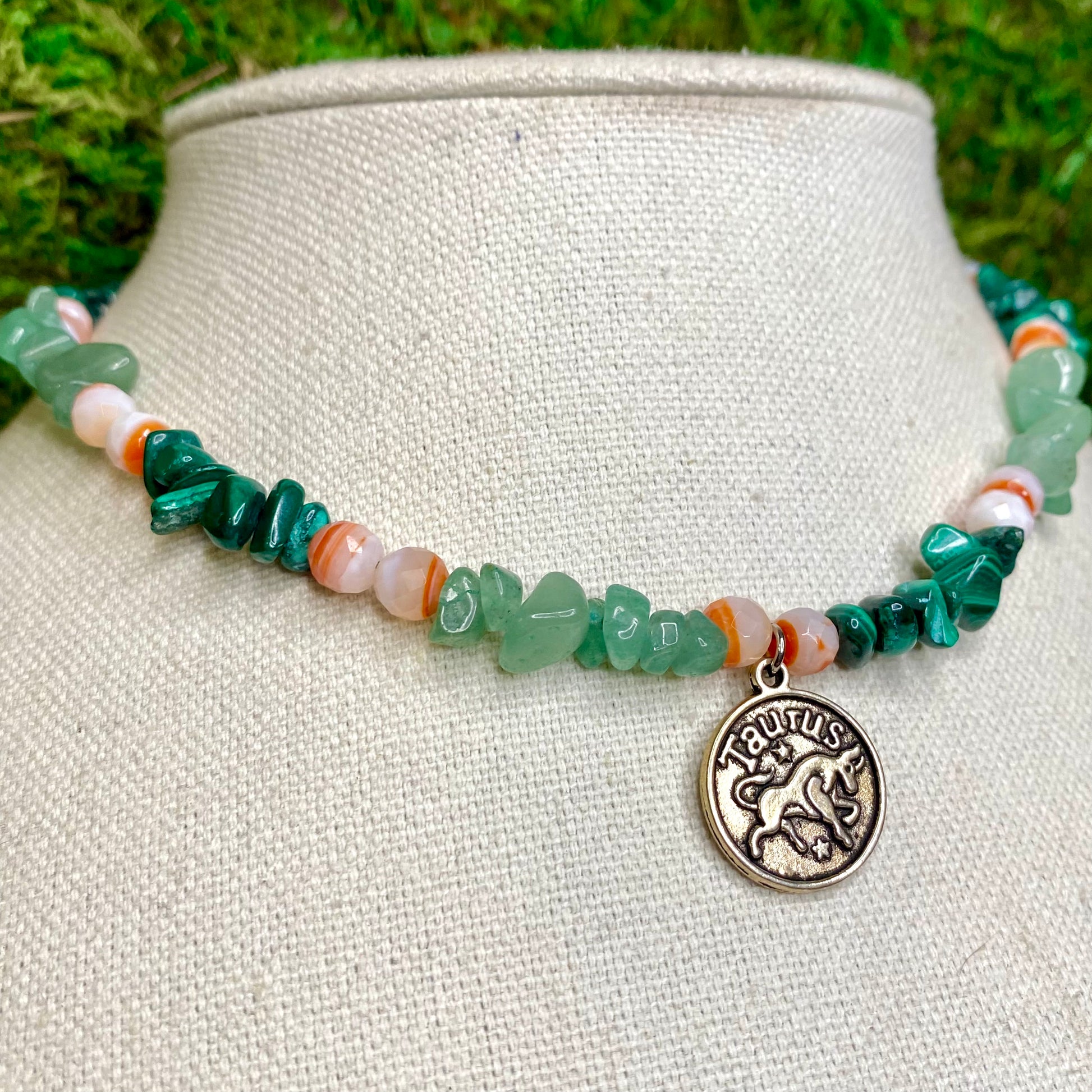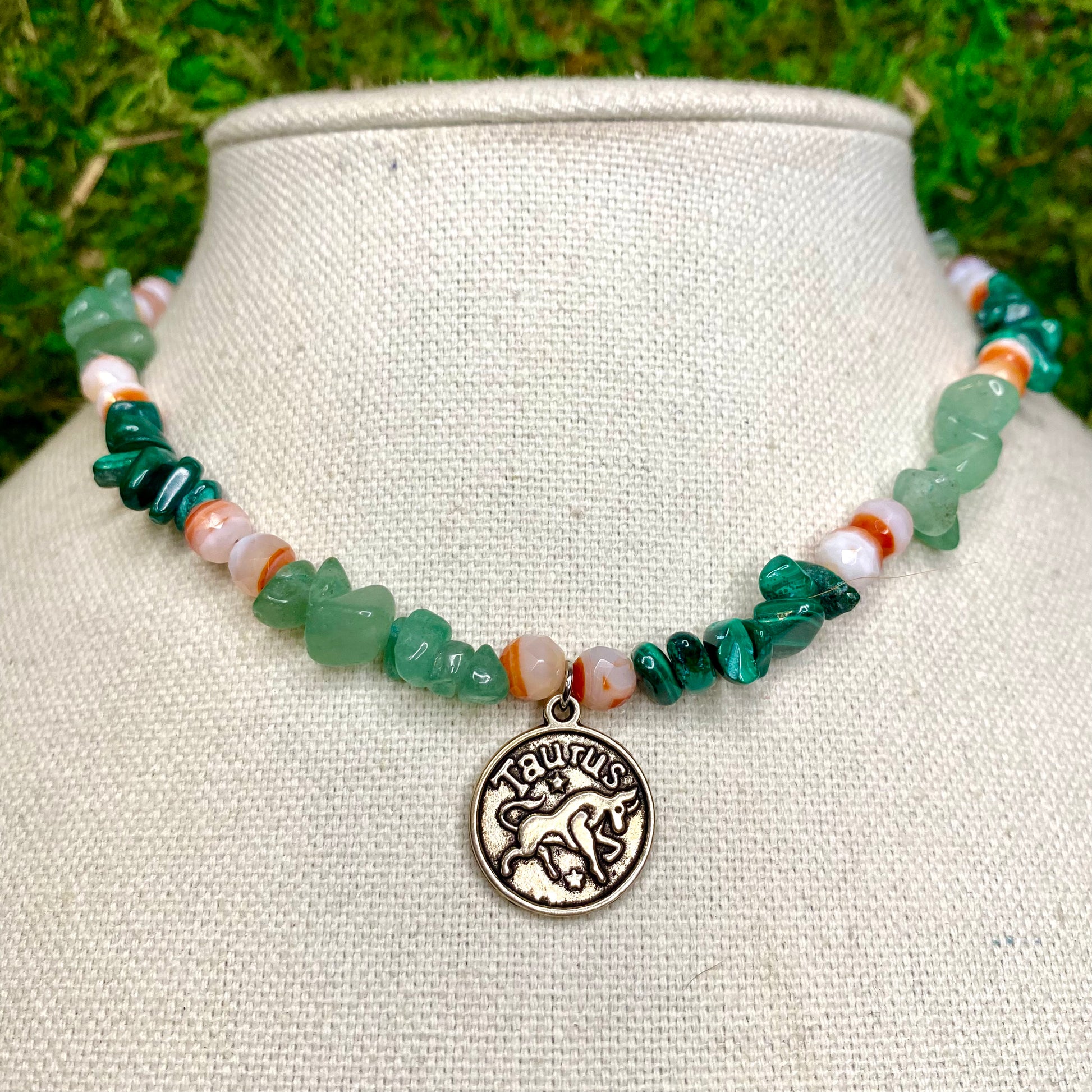 Malachite and Green Aventurine are used in this necklace to help Tauruses cope during change and support self-improvement. They can also help you understand your emotions and release the negative thoughts of the past, allowing you to move forward with acceptance.