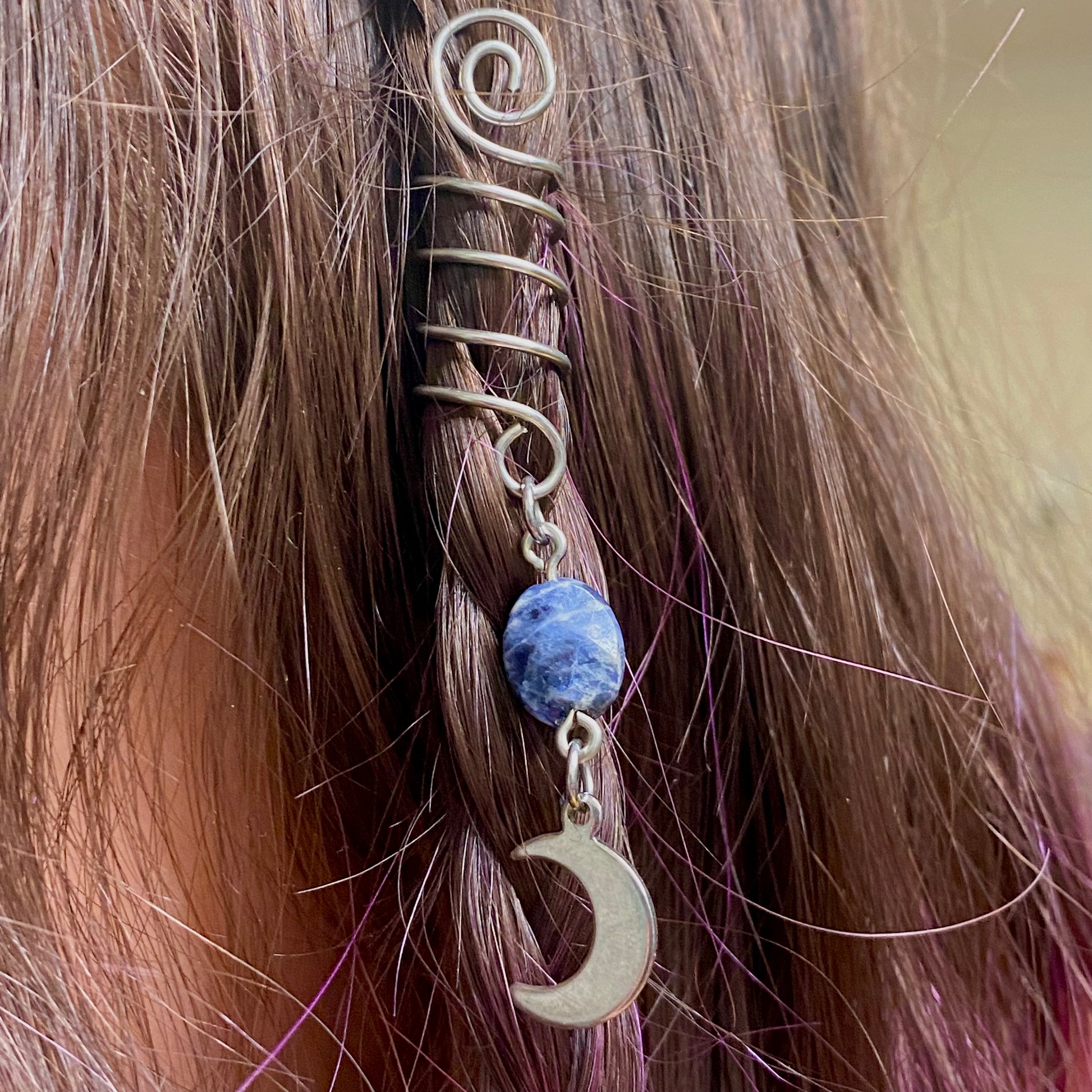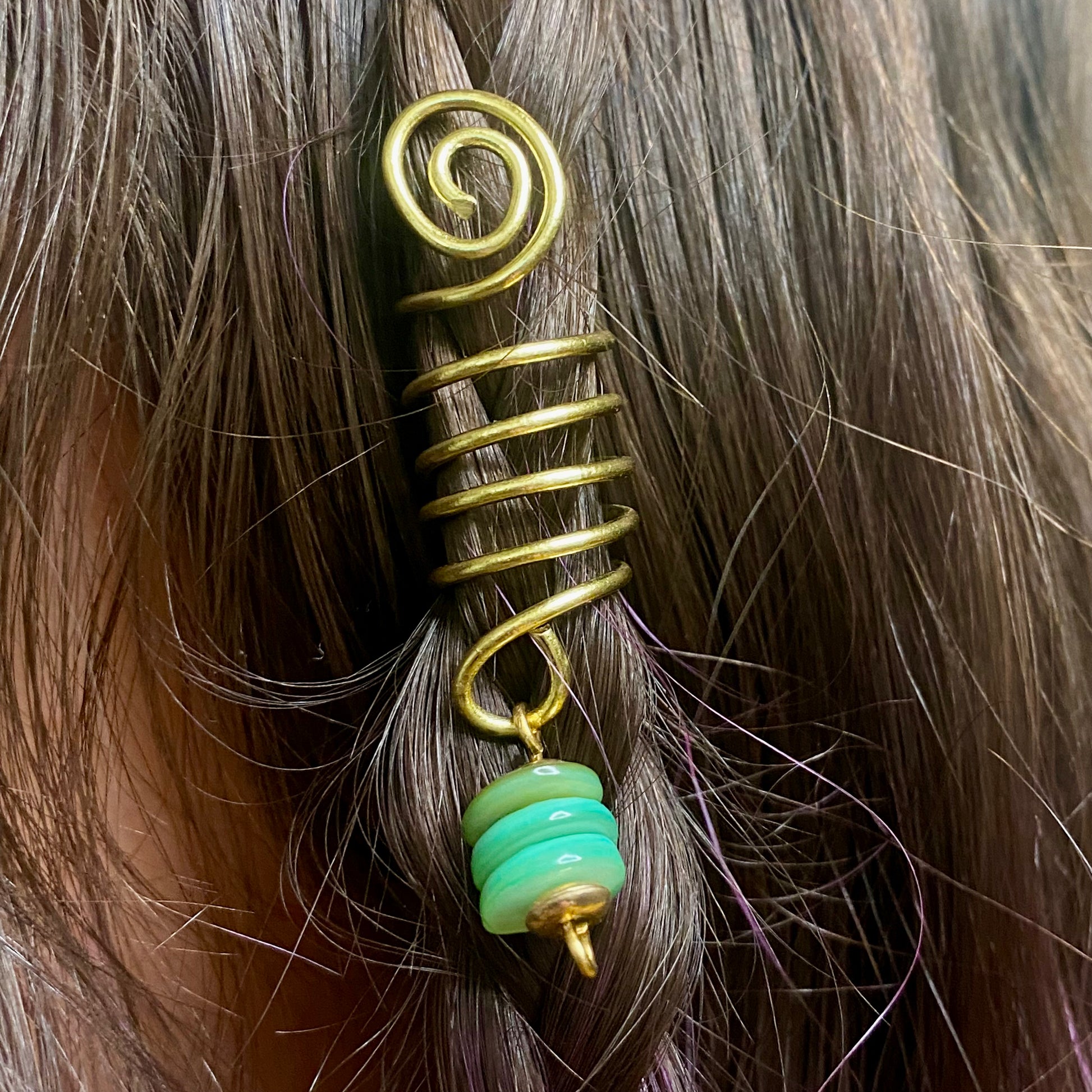 To wear - braid a section of hair that matches the size of the spiral and twist the hair jewelry onto the braid, following the direction of the spiral